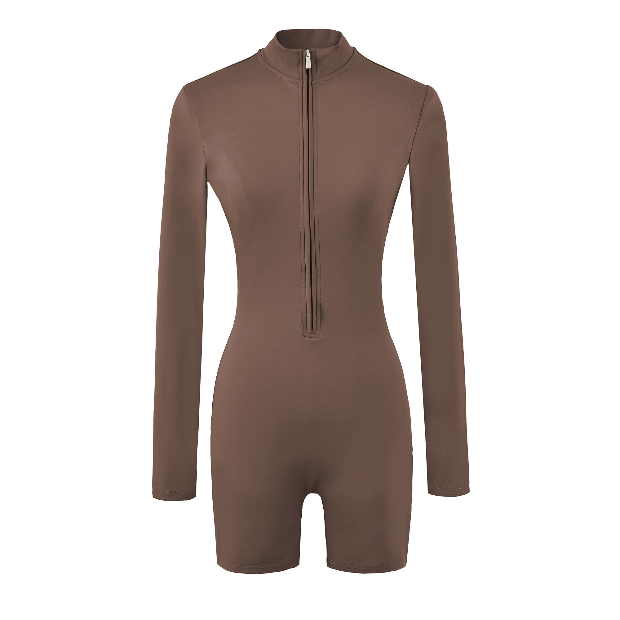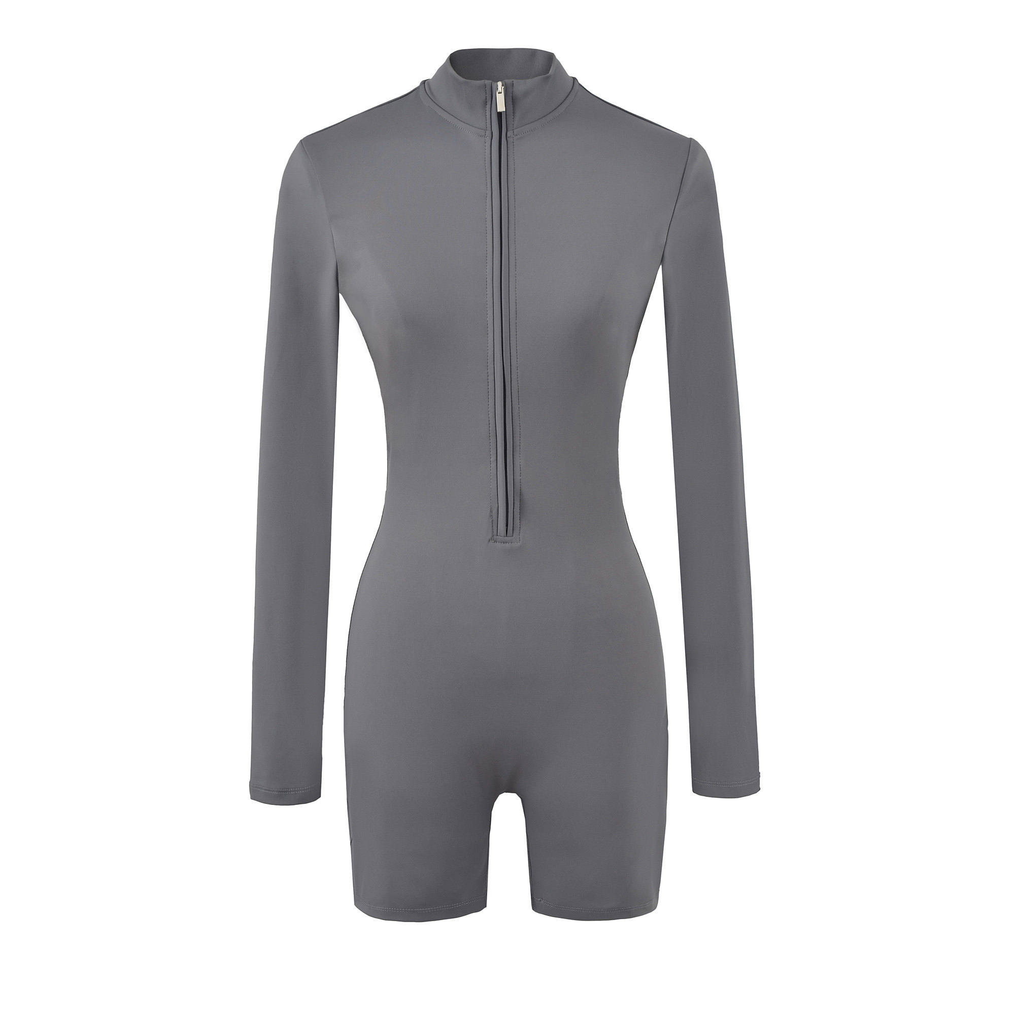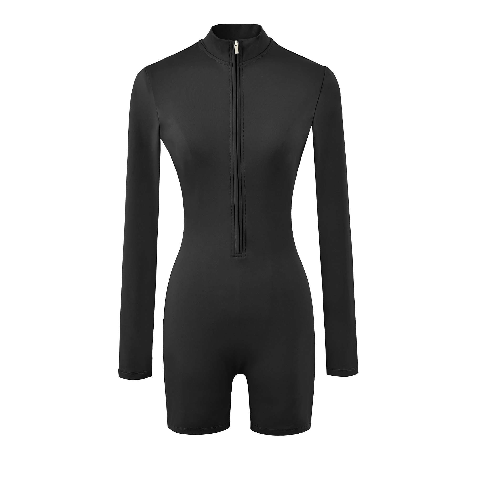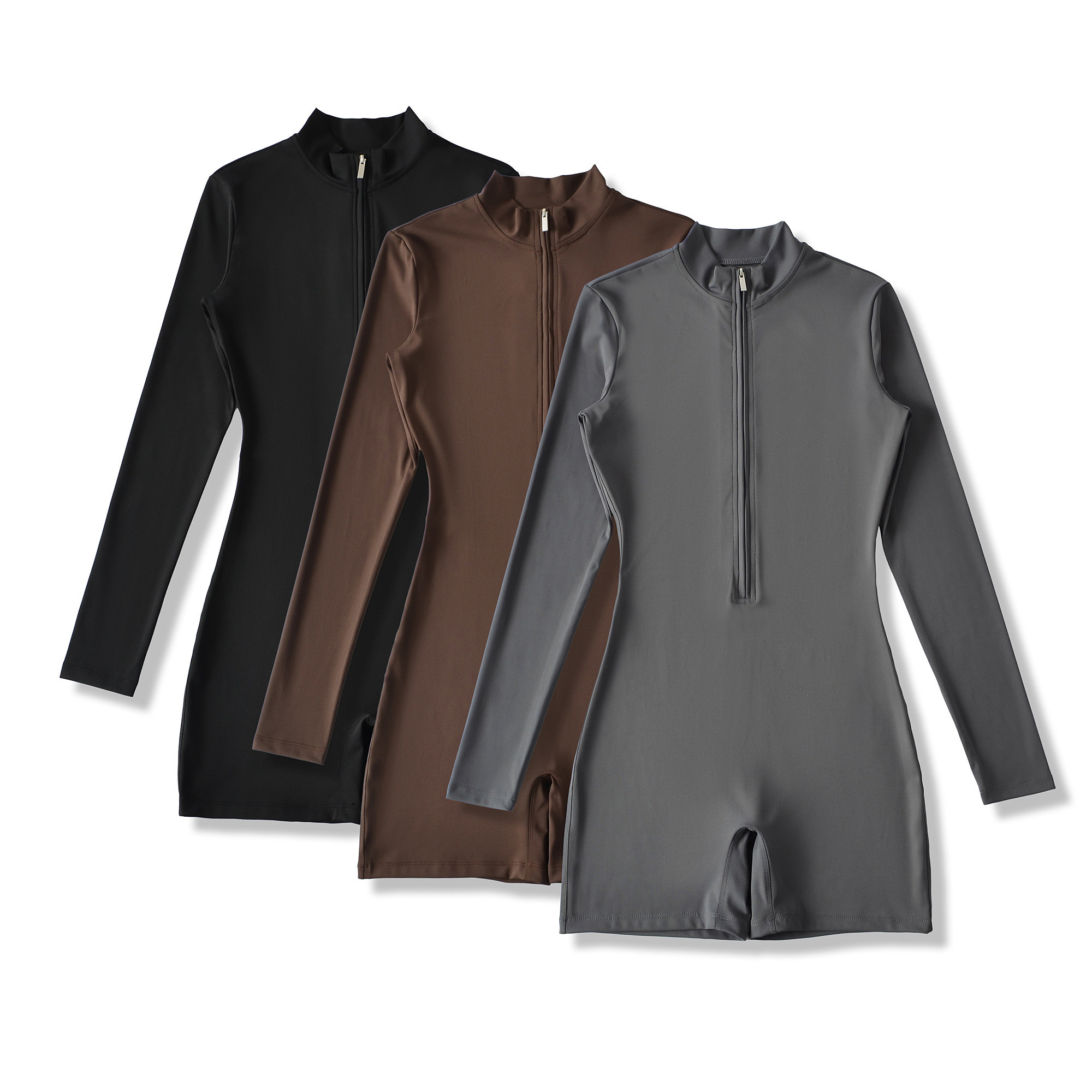 连体衣女紧身显瘦塑身运动瑜伽连体短裤 拉链长袖 外穿 辣妹修身 美式