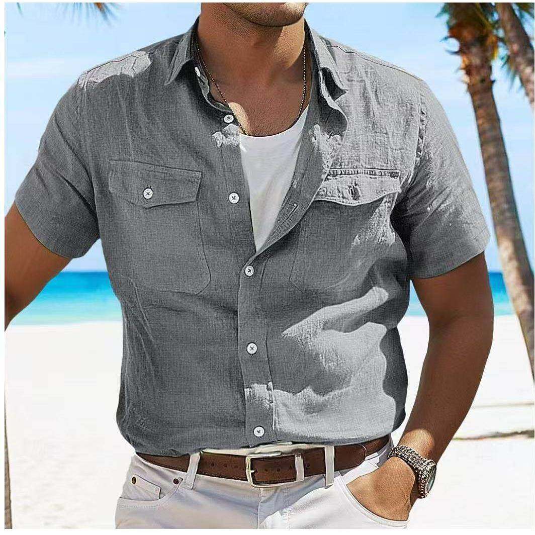 上衣Men 沙滩T恤翻领春夏休闲潮短袖 2025男士 衬衫