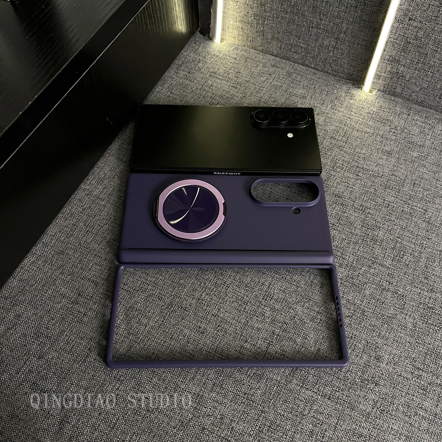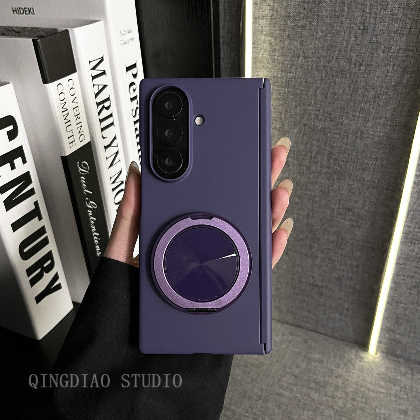 24手机壳新款 轻调 Galaxy Z W25 折叠屏翻盖防摔保护套 轻奢纯色暗紫肤感360度旋转支架适用于三星zfold7