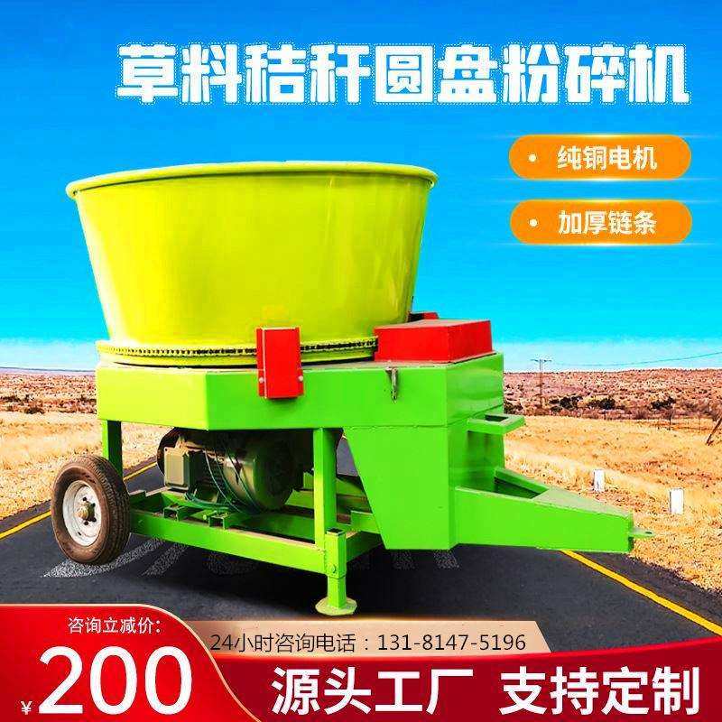 下出料圆盘粉碎机带可折叠上料带 秸秆揉搓机圆筒自动切草粉料机