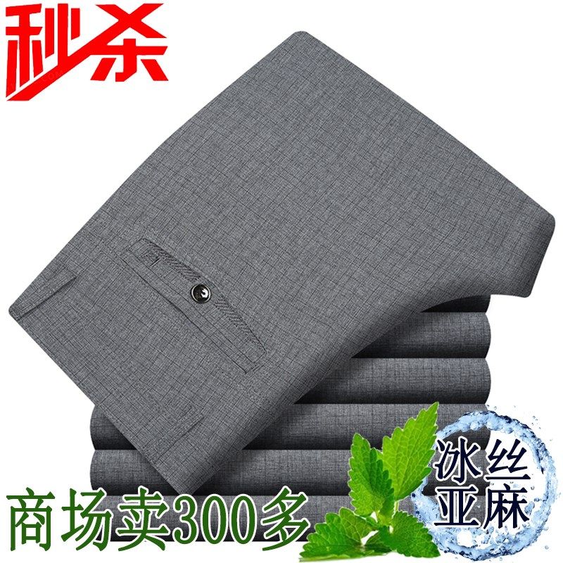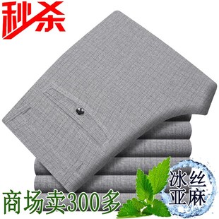 男夏薄款 男直筒宽松长裤 弹力棉麻冰丝裤 免烫休闲裤 子男士 亚麻裤