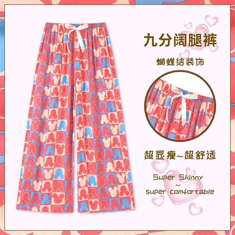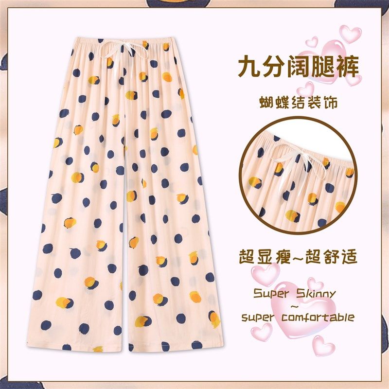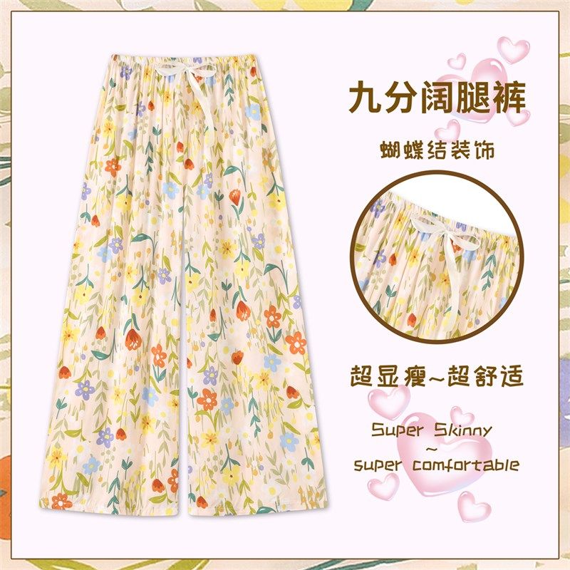 人造棉休闲学生小个子可外穿家居裤 女防蚊九分阔腿裤 睡裤 棉绸夏季