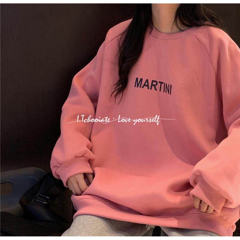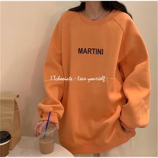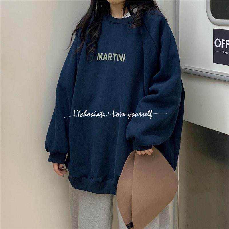 I.Tchooiate加绒深蓝色落肩卫衣女2025秋宽松长袖 圆领众无帽插肩
