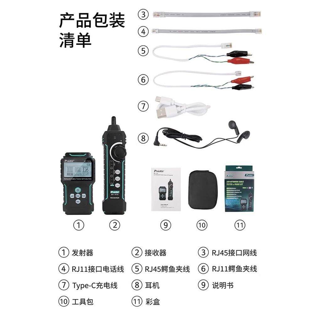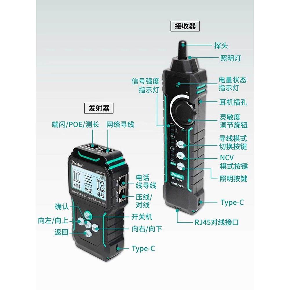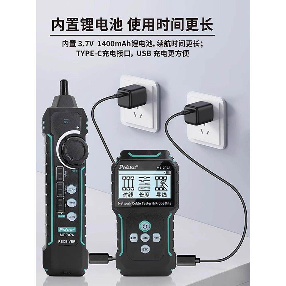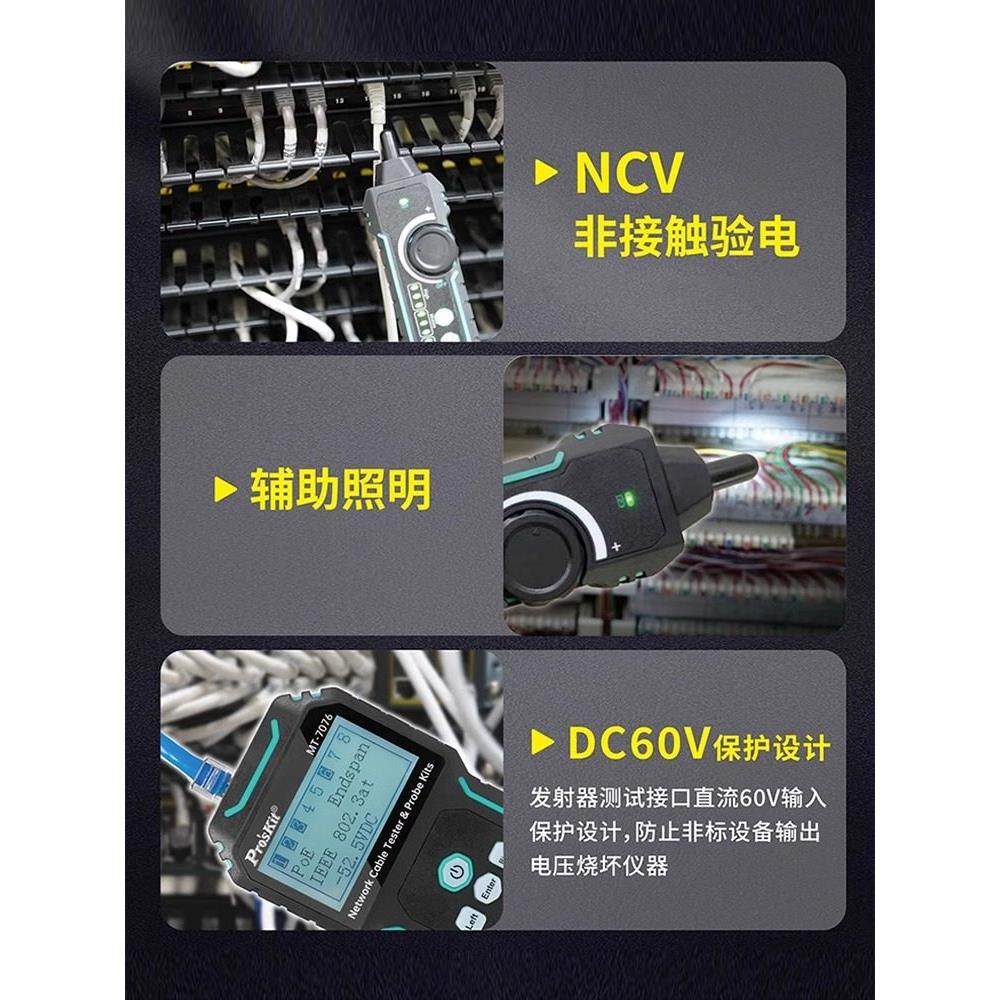 宝工MT LCD抗干扰网路测试寻线仪PoE对线长度带电寻线60V 7076