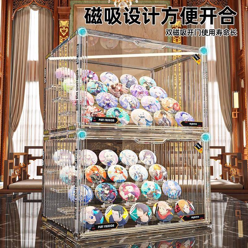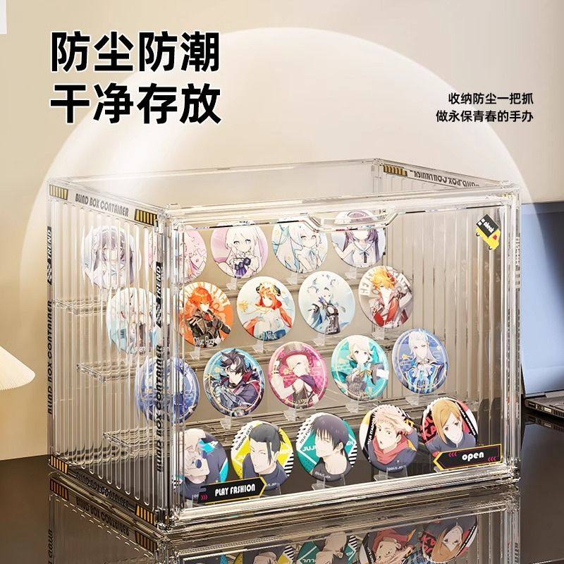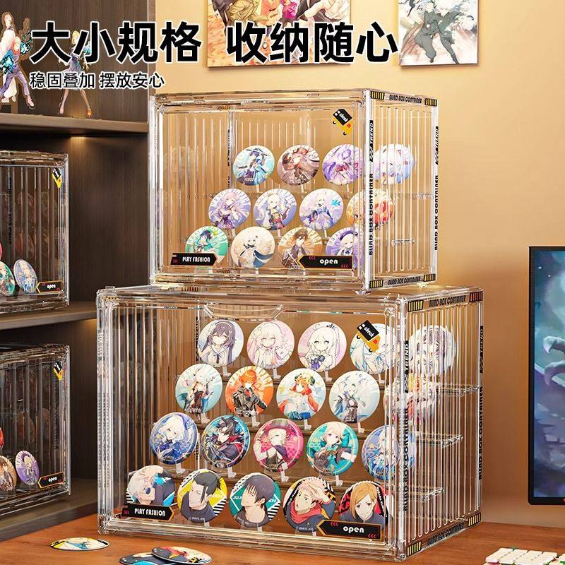吧唧收纳盒谷子动漫周边谷子防尘亚克力透明带盖盲盒收纳展示盒