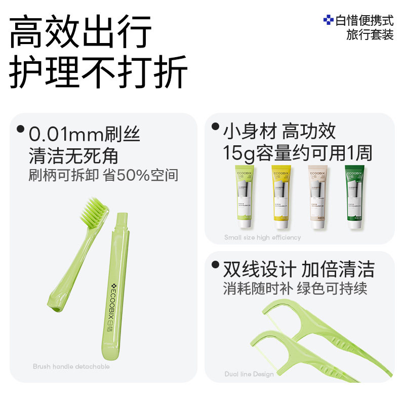 白惜旅行装 便携出差小魔方清新口气抑菌抗糖牙刷牙膏牙线旅行小盒