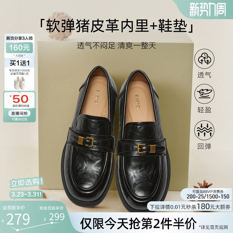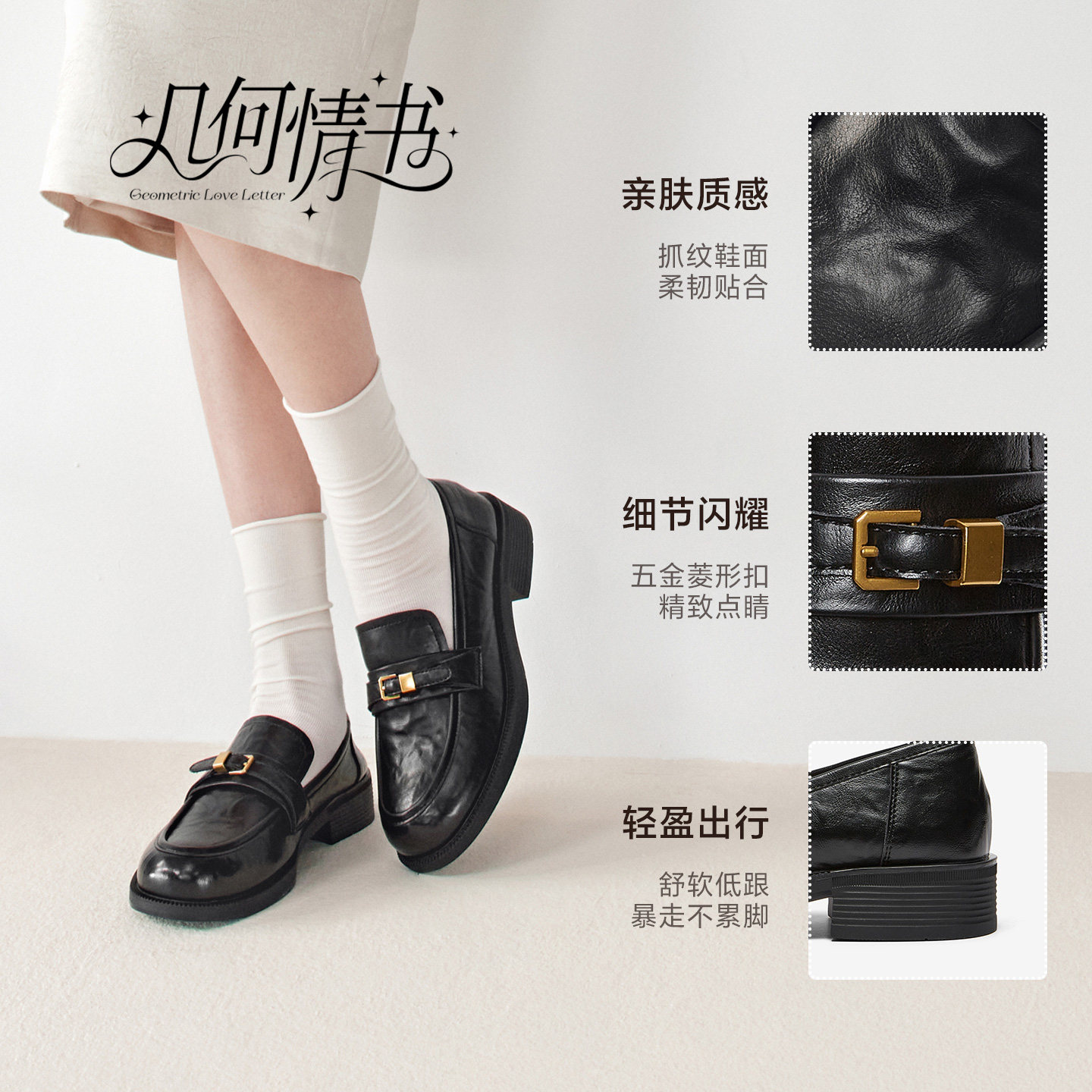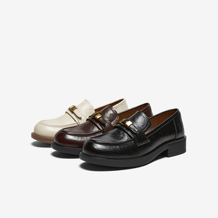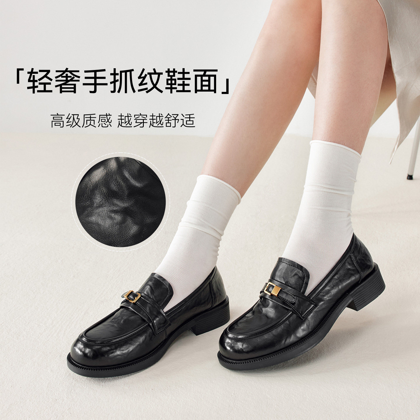 软底不累脚女单鞋 英伦风一脚蹬乐福鞋 BV530AA6 新款 百思图2026春季