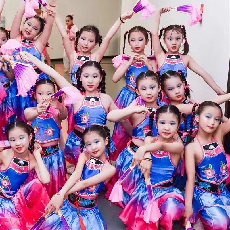 儿童舞蹈服渐变色桃李杯扇花花开舞蹈服幼儿扇子舞秧歌服肚兜表演