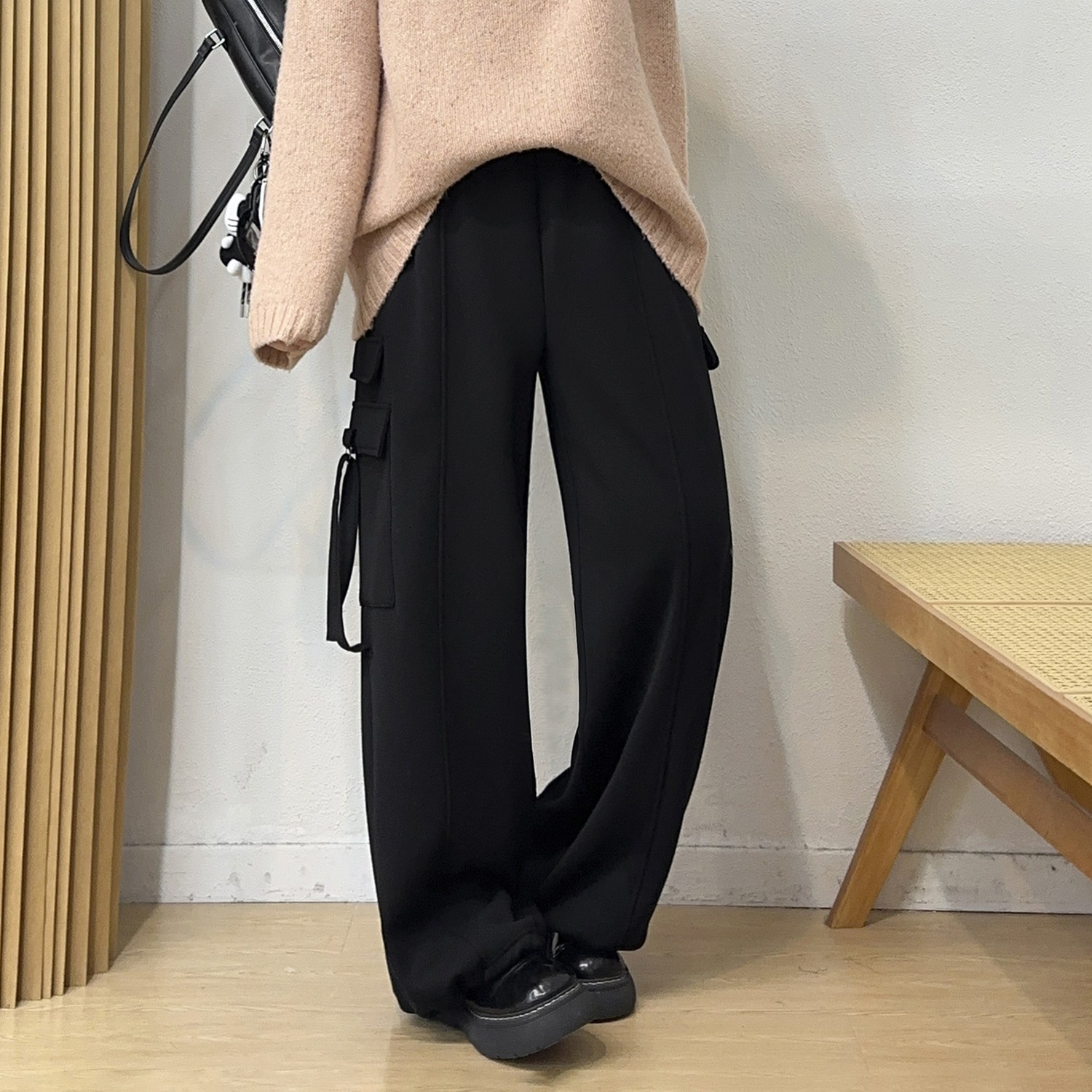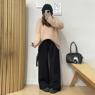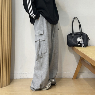 运动工装 高腰垂感休闲裤 裤 胖mm大口袋宽松阔腿裤 子 女秋季 宛宛大码