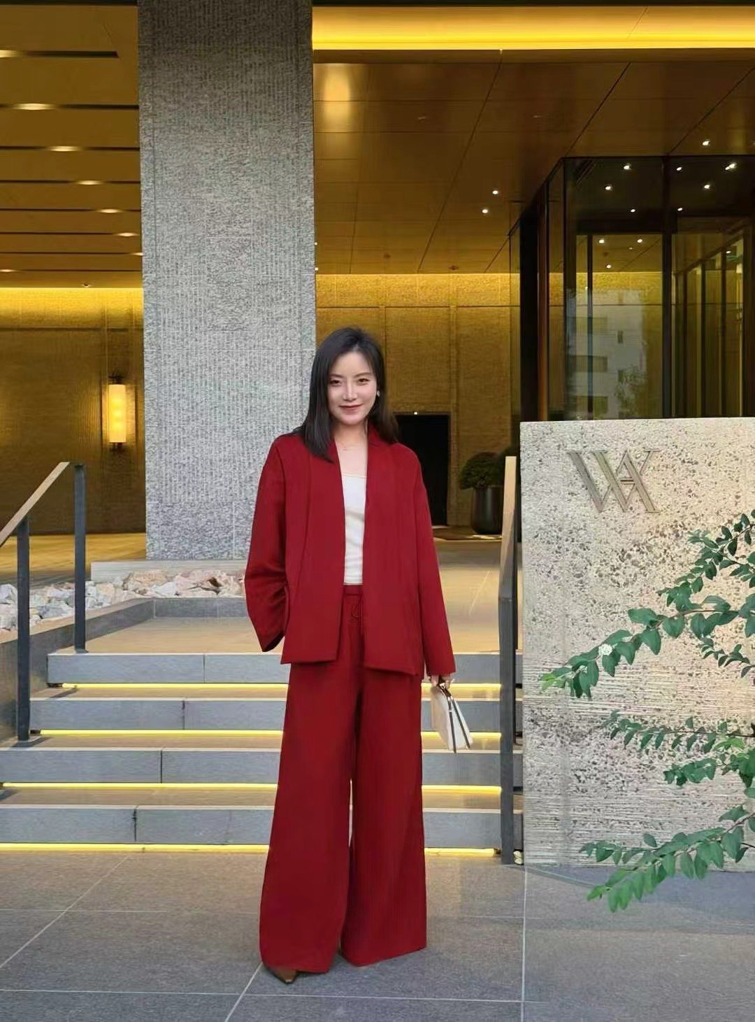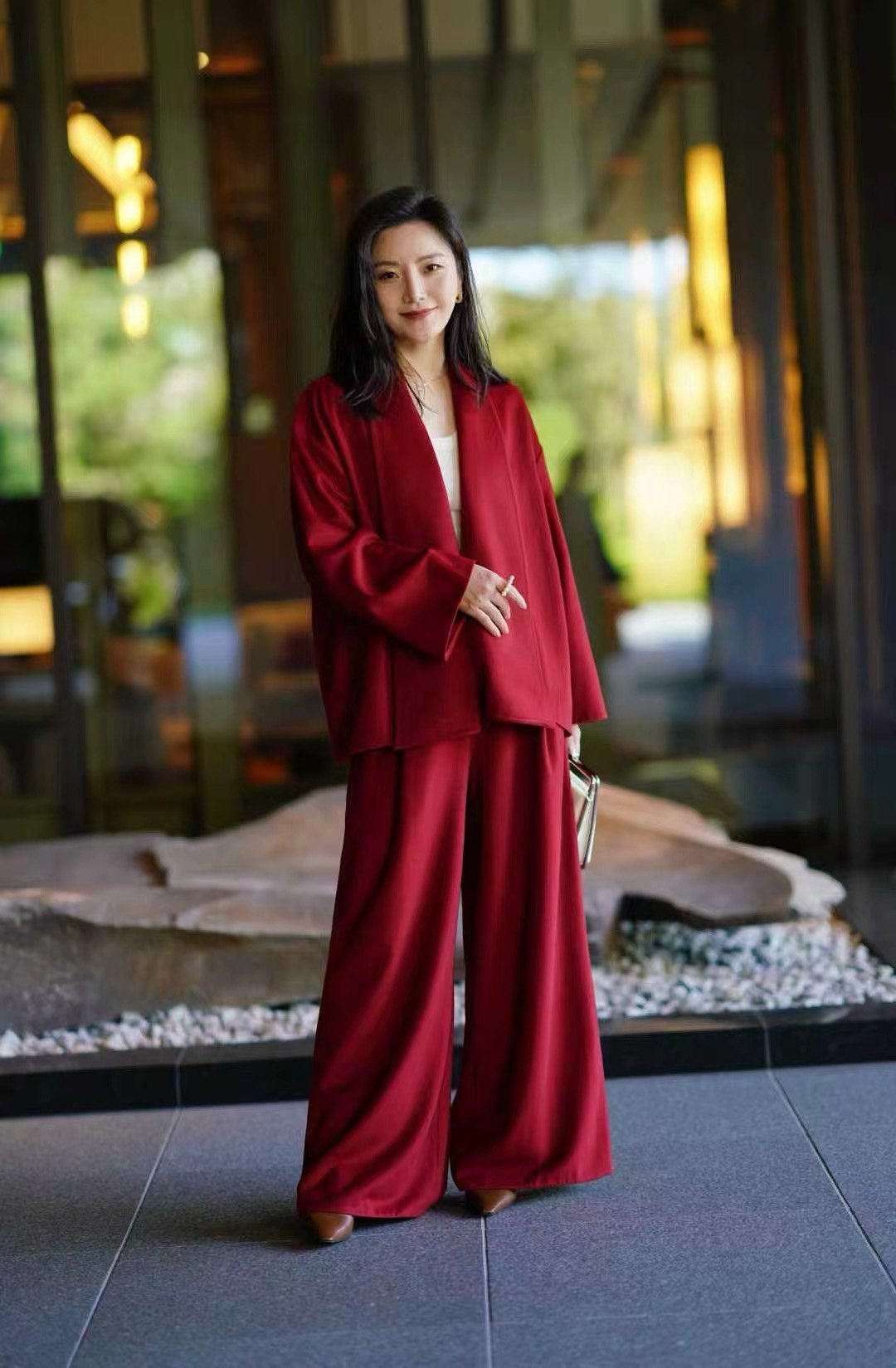 两件套女 气质百搭纯色系宽松羊绒外套抽绳裤 轻奢重工 25秋冬新款