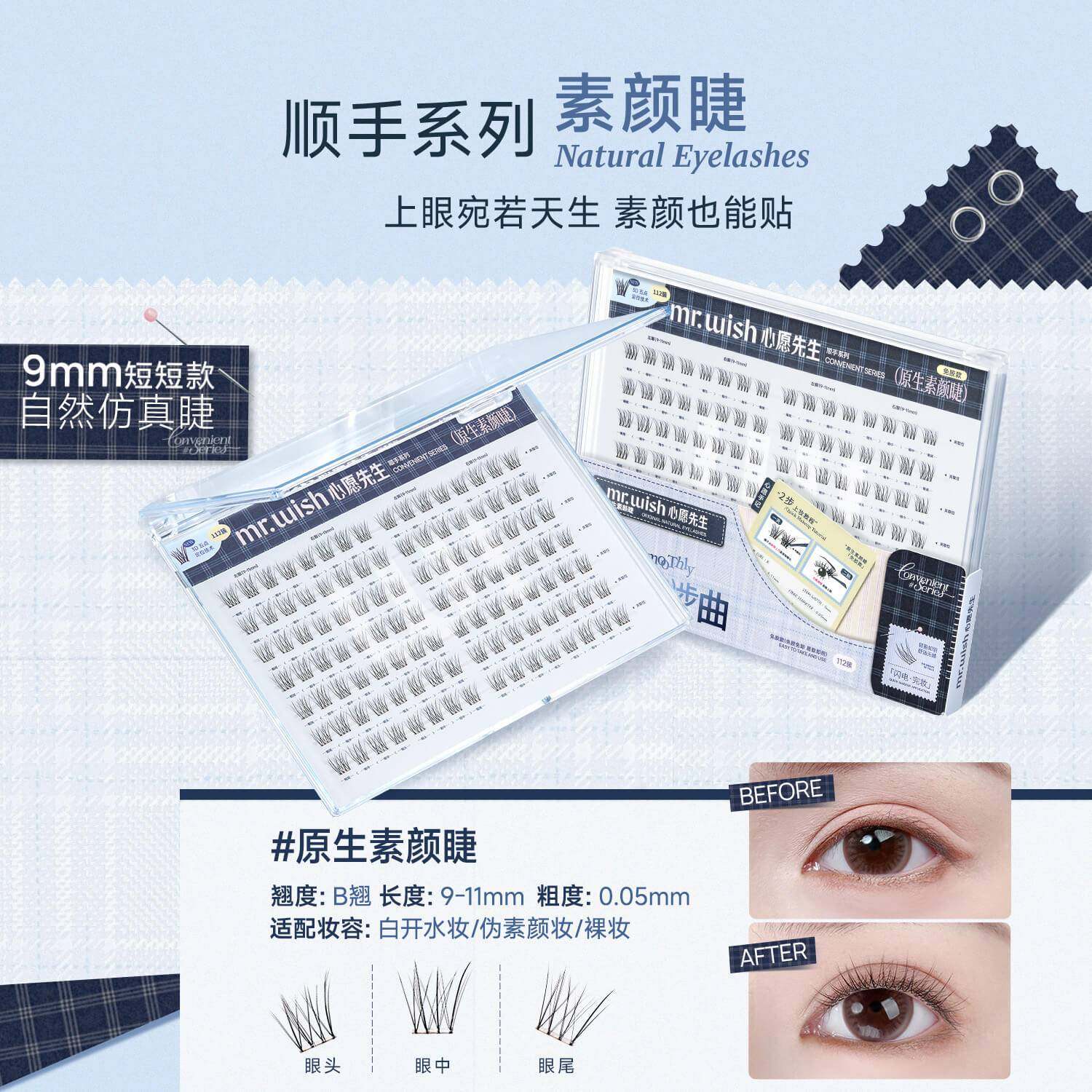 心愿先生PLUS版 大盒免胶假睫毛懒人三步曲分段眼睫毛贴自然浓密款