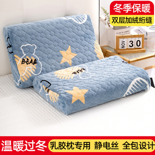 花花公子双人长枕套加厚冬季 牛奶绒夹棉珊瑚绒加长情侣夫妻枕头