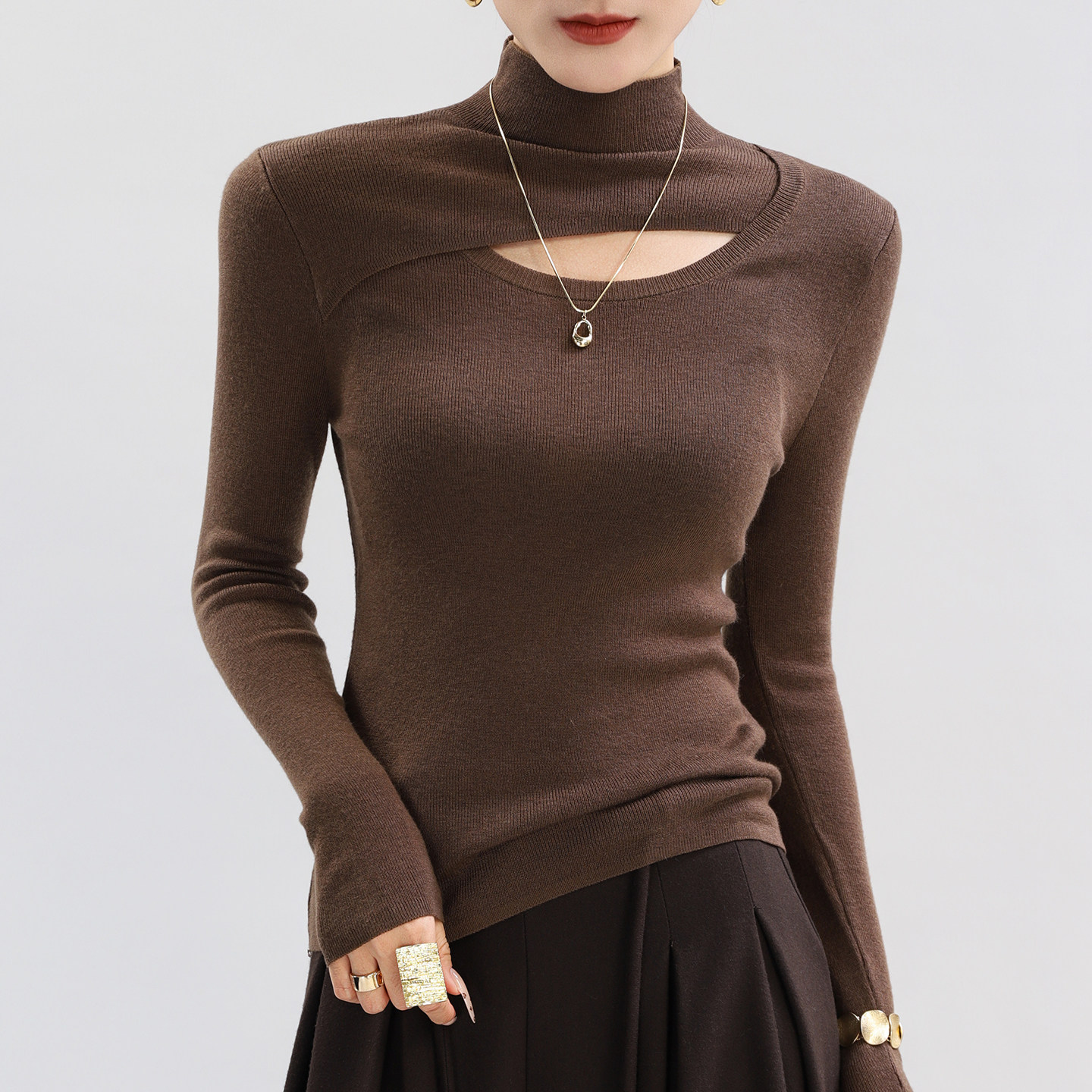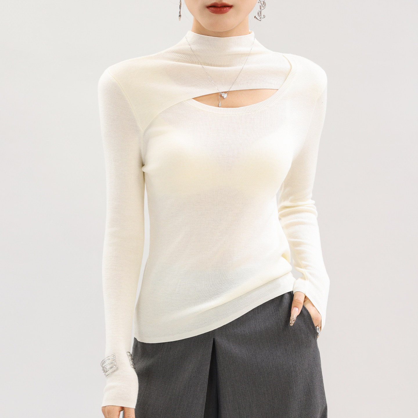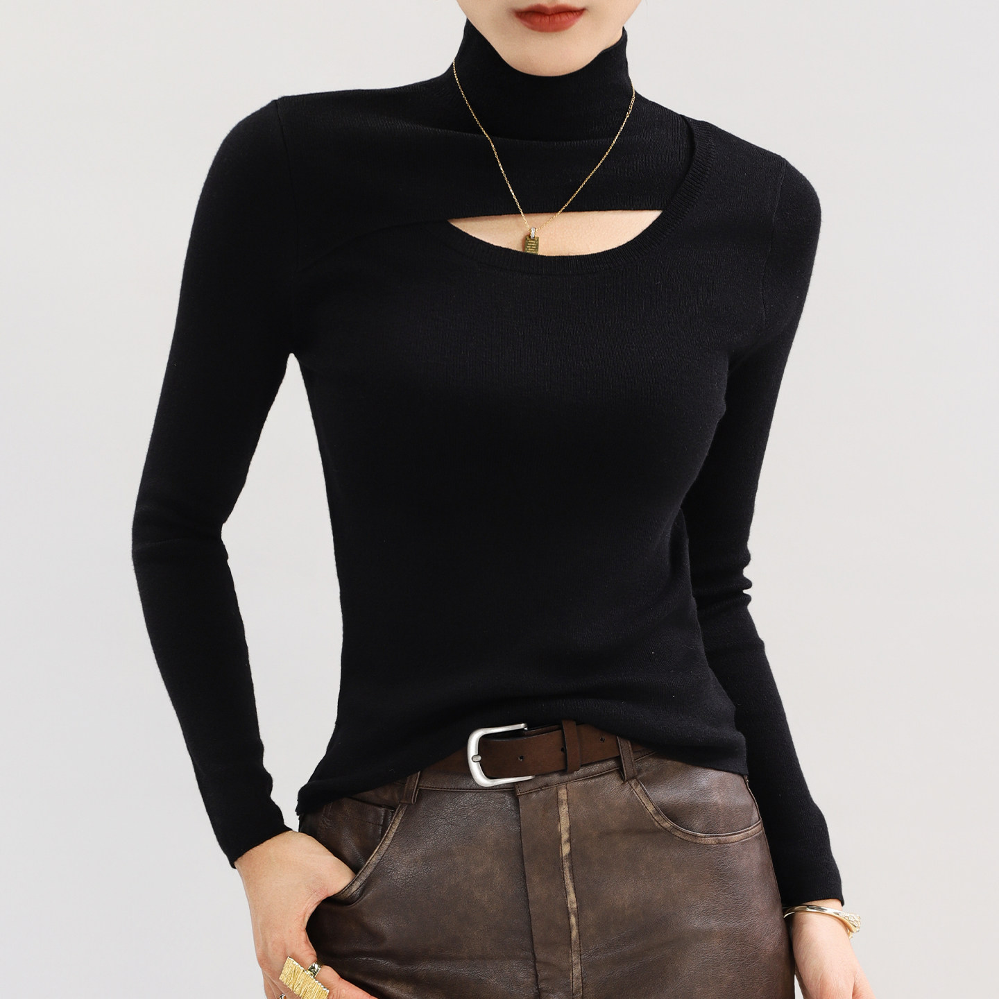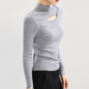 半高领紫色羊毛针织衫 内搭高质量软糯毛衣冬 高级感超好看镂空修身