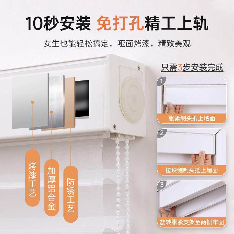 窗帘卷帘百叶免打孔杆卫生间厨房全遮光阳台升降卷拉式 办公卧浴室