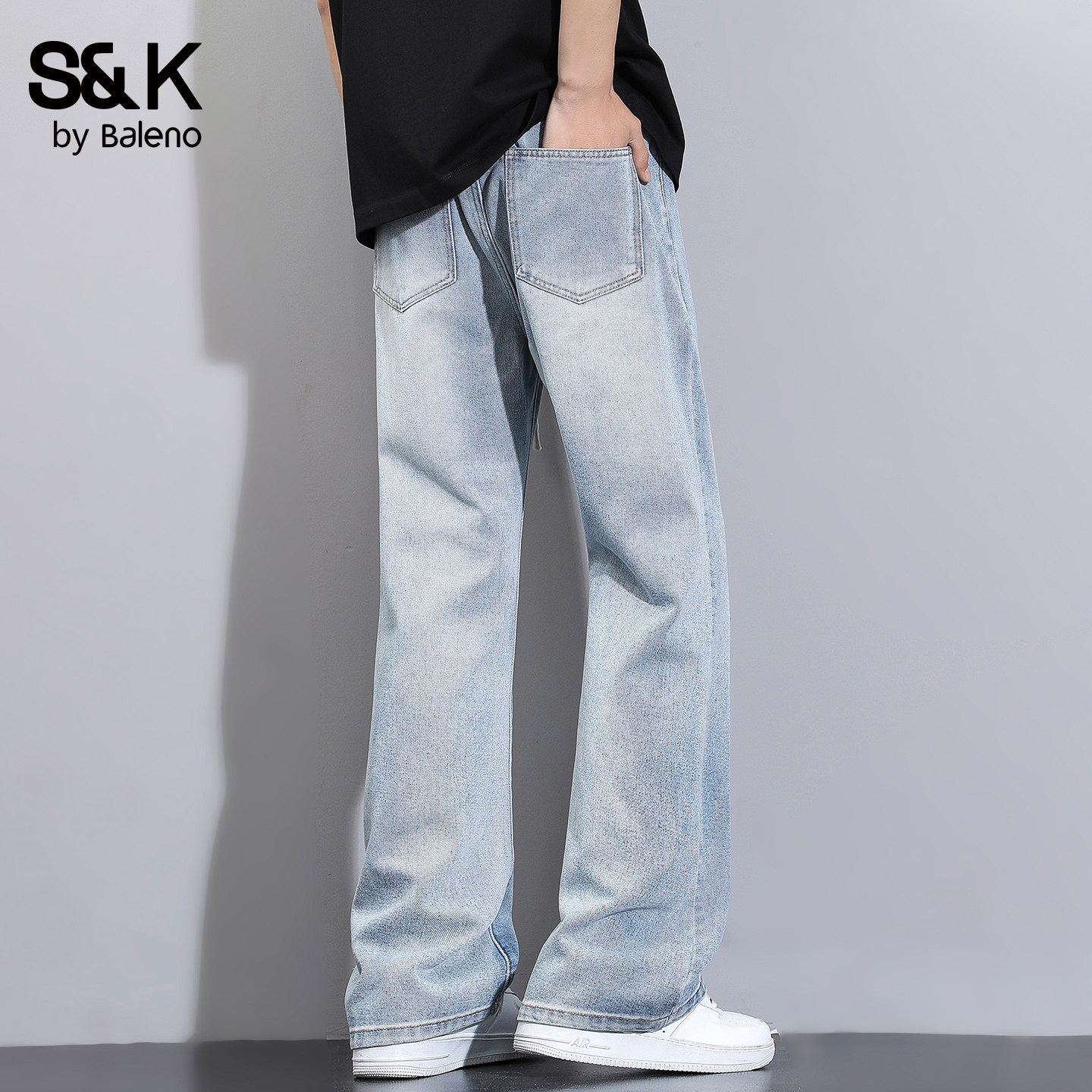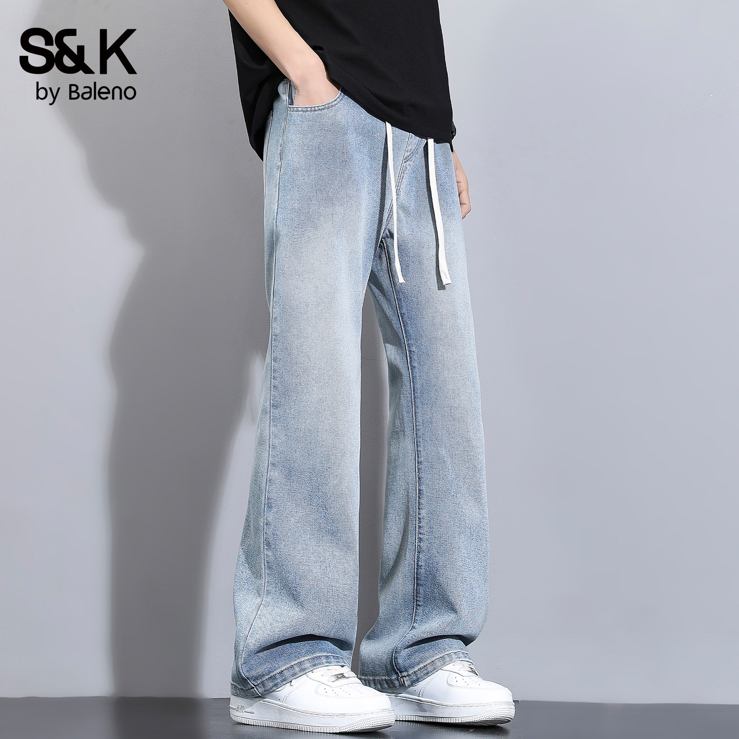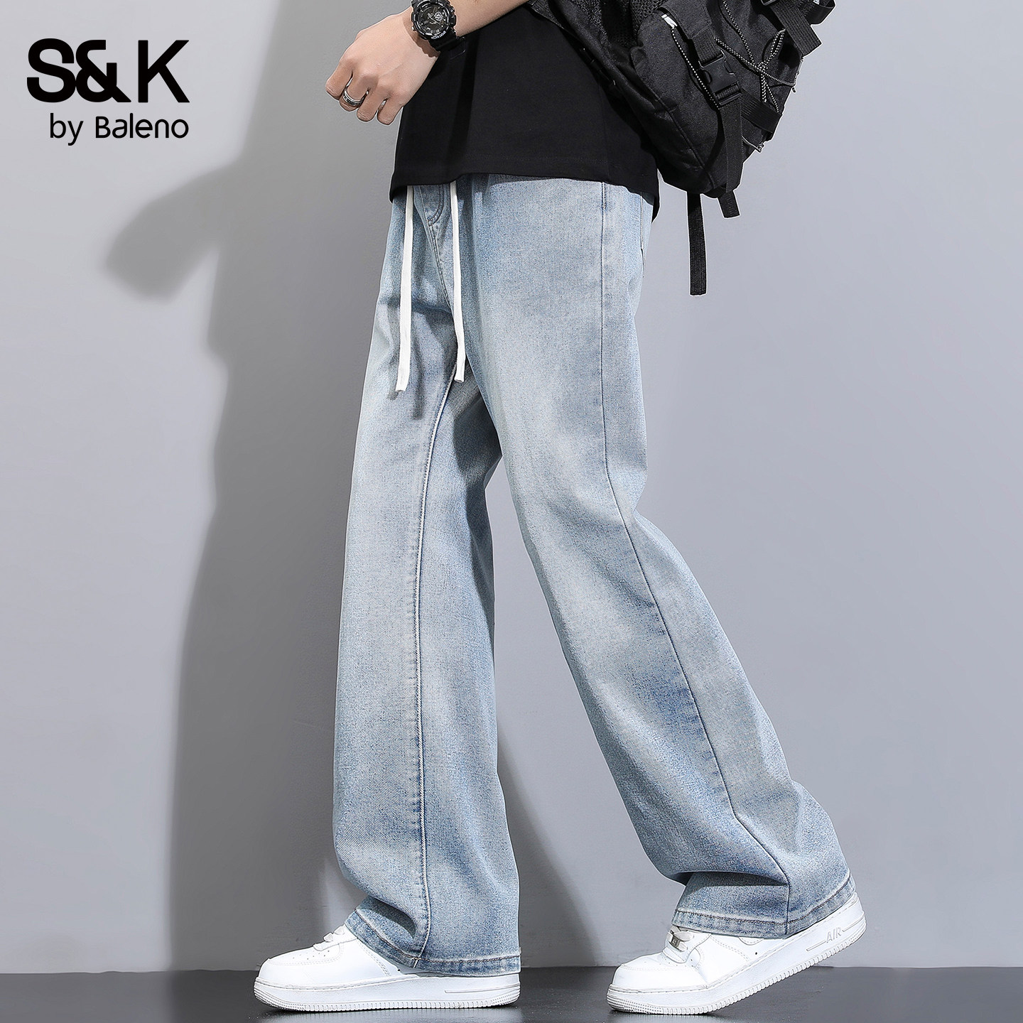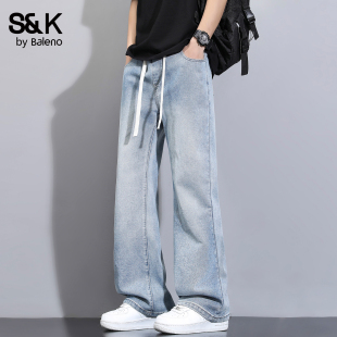 高街微喇叭牛仔裤 松紧腰学生长裤 男春夏季 窄版 夏季 班尼路SK美式