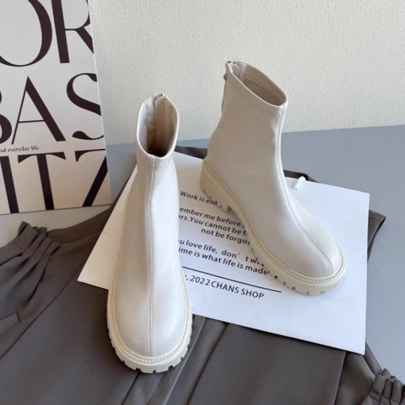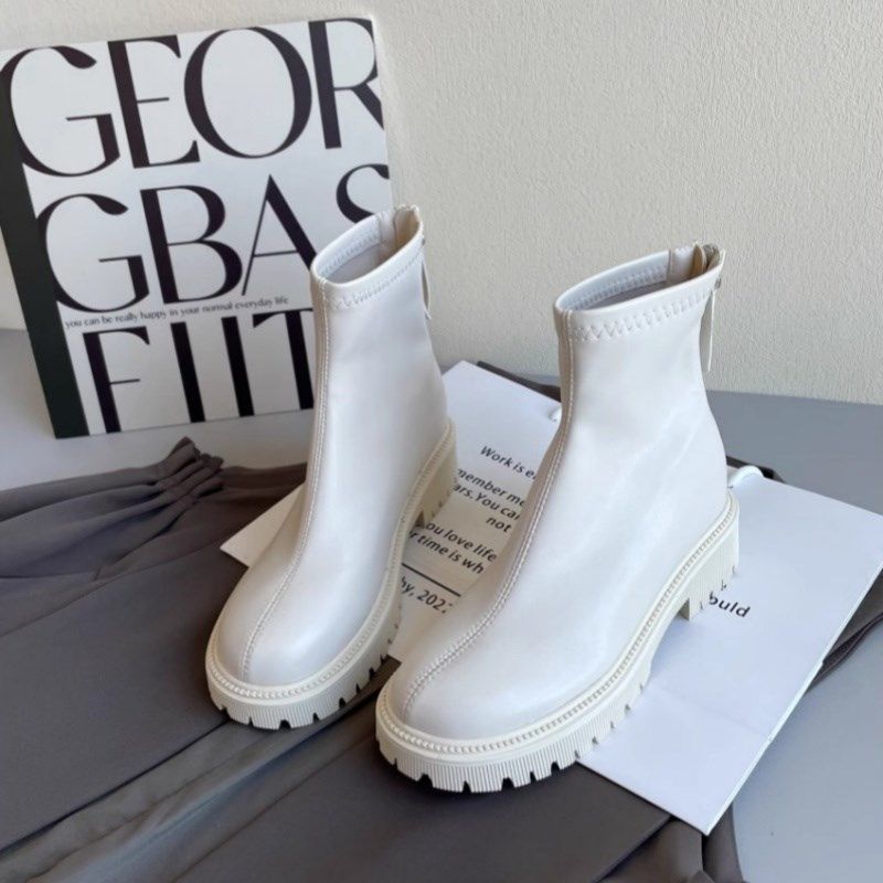 达芙妮加绒东北保暖英伦风马丁靴女2025秋冬新款 白色短靴雪地棉鞋
