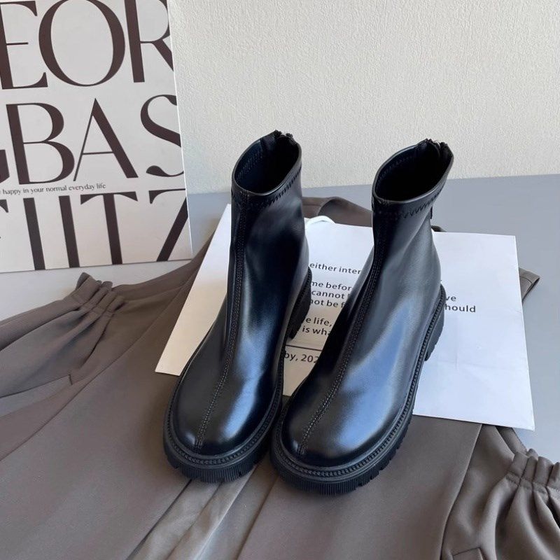 厚底增高短靴保暖棉鞋 加绒靴子2025年新款 秋冬季 英伦风马丁靴女款