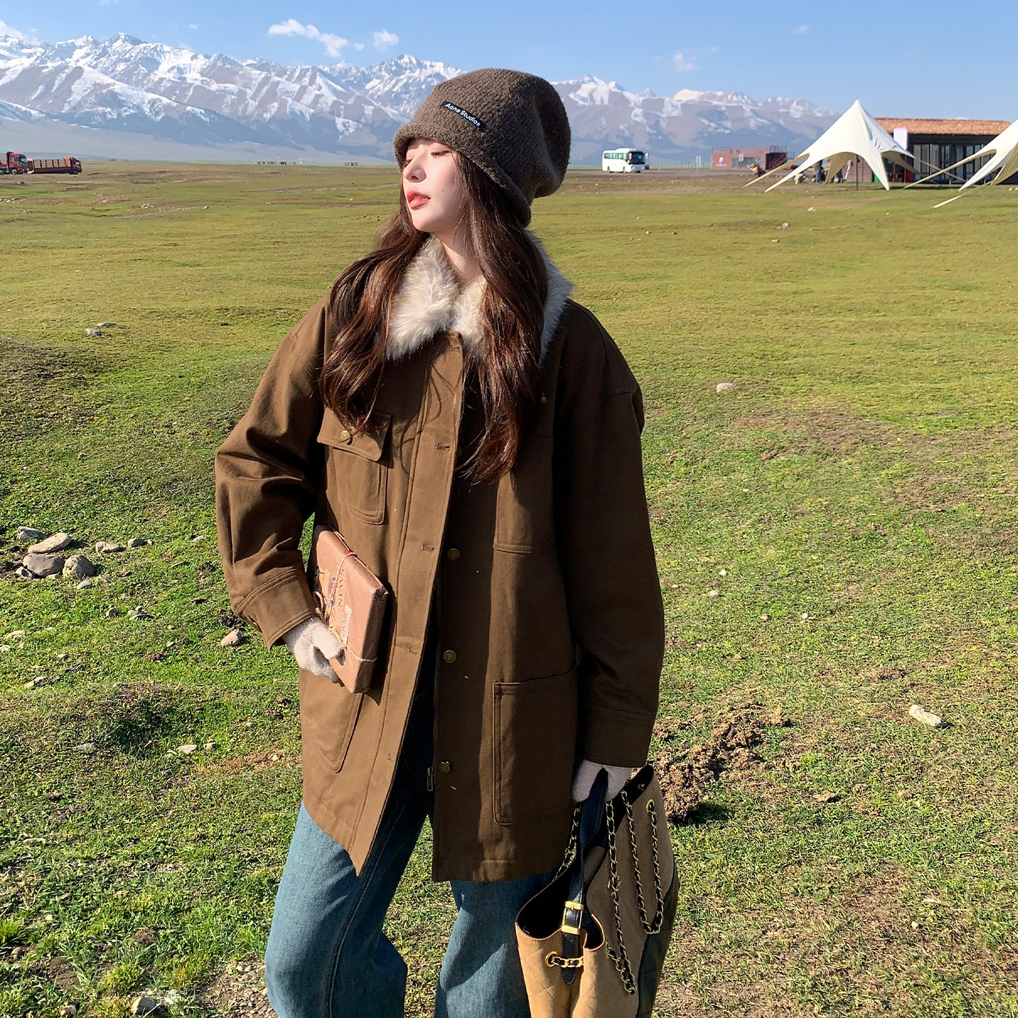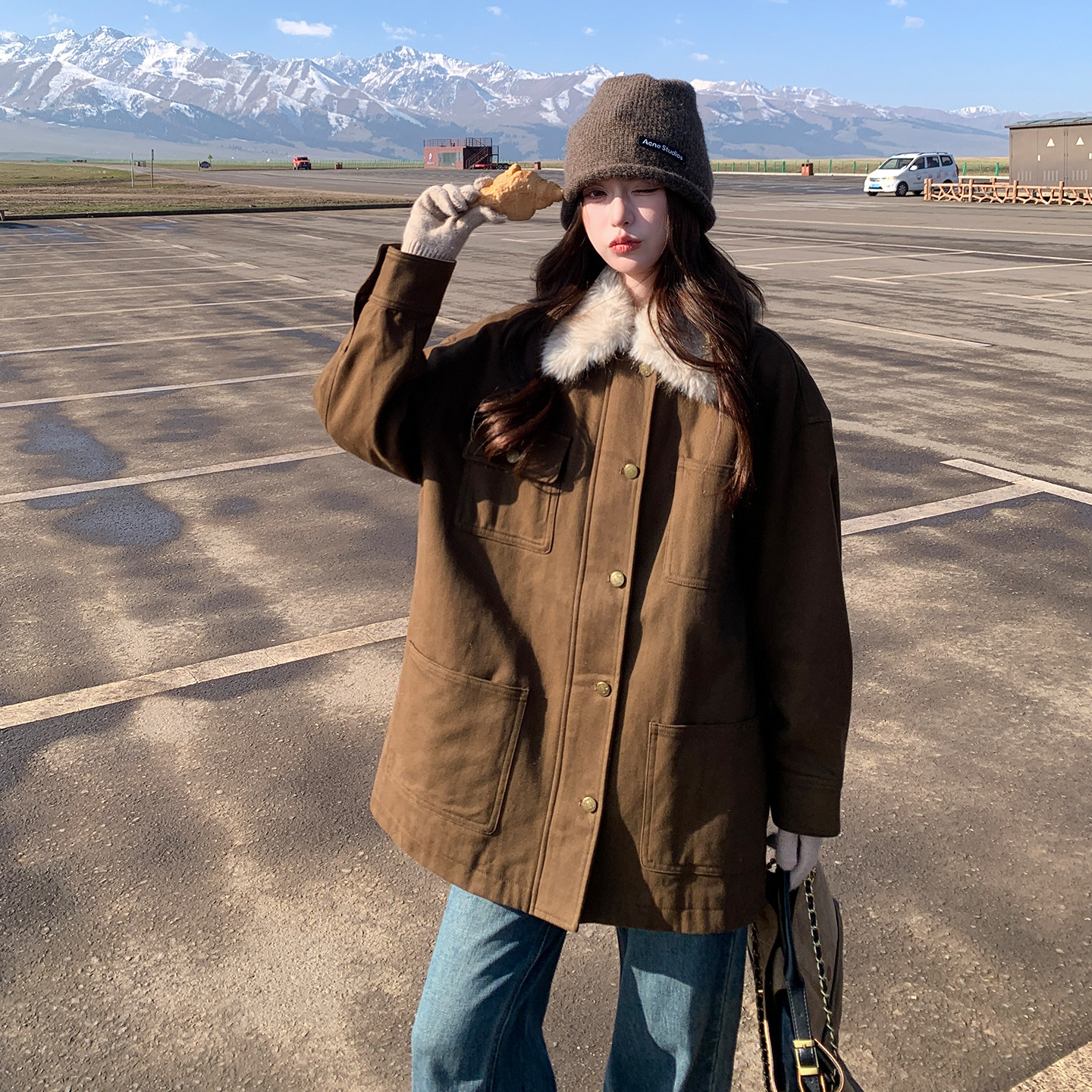 首发 K418 2B110 P265 卡其绿毛领可拆卸羽绒服 3769 新款