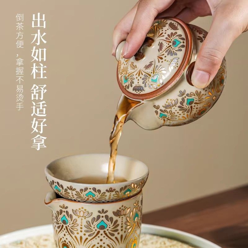 办公室喝茶泡茶盖碗茶壶茶杯子套装 汝窑功夫茶具套装 家用2025新款