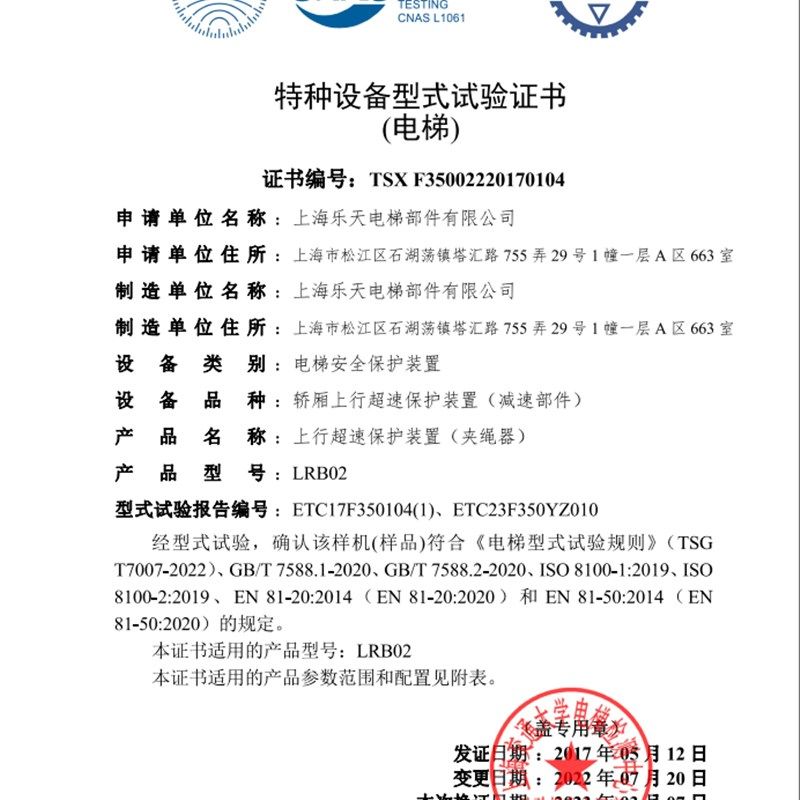 B控制电源LOG02上海乐天夹绳器LUC03A FB电梯超速保护LCB LRB03