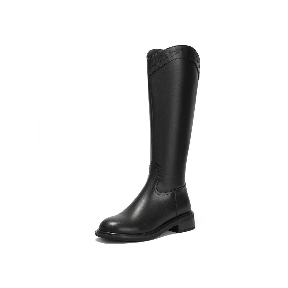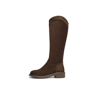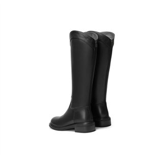 靴皮靴 时装 吴宣仪天美意千金靴复古厚底骑士靴加绒长靴女鞋 子新款