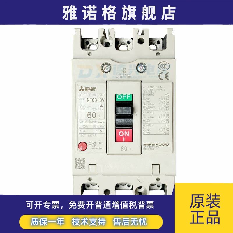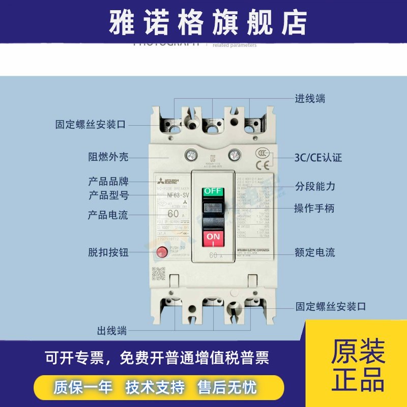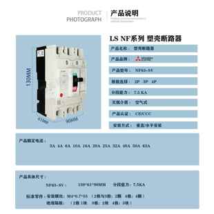 三菱NF63 3P空气开关工业塑壳保护器三相四线100a漏保断路器