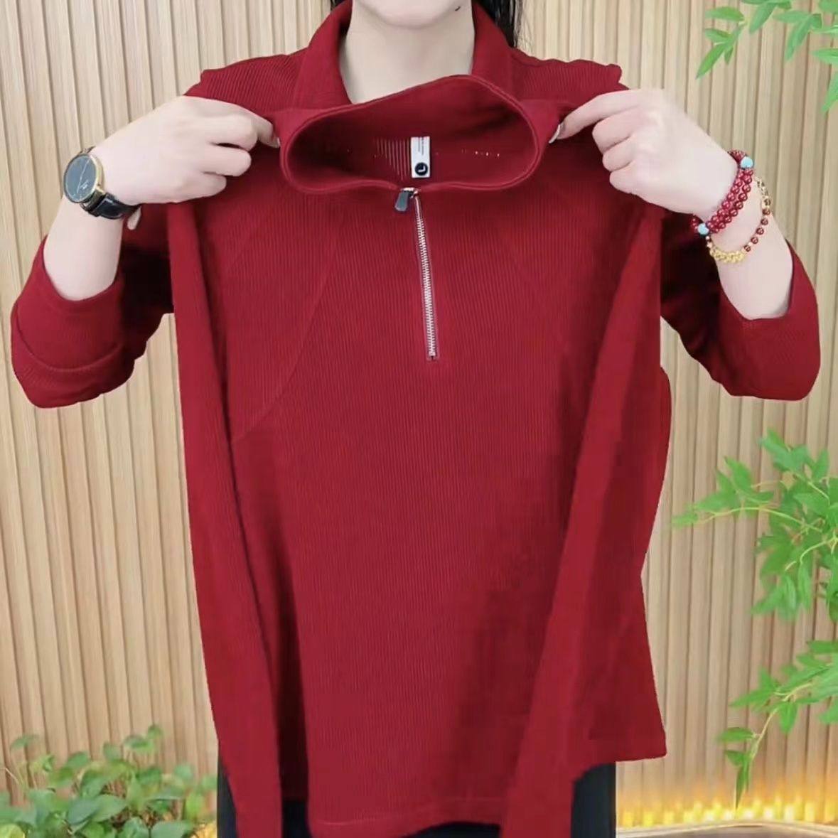 加厚加绒针织衫 纯色大码 毛衣中老年女装 中老年半高领仿貂毛妈妈装