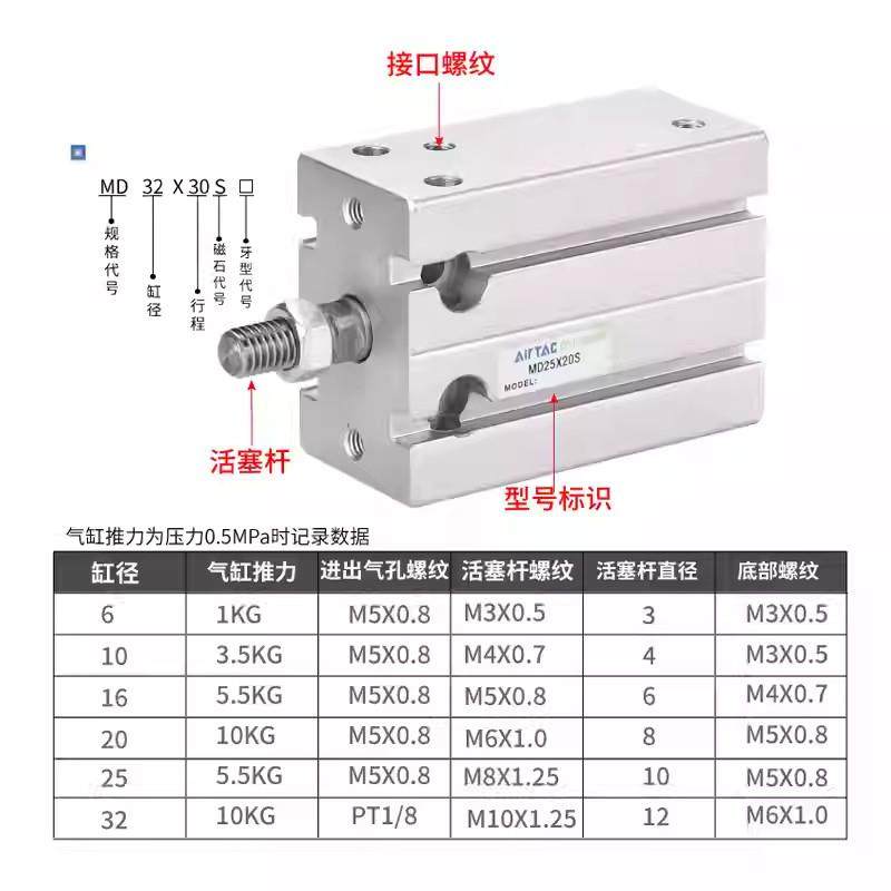 10X15X20X25X30X35 亚德客小型自由安装 20X5 40X50S 气缸MD10