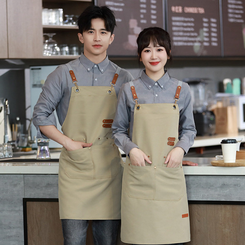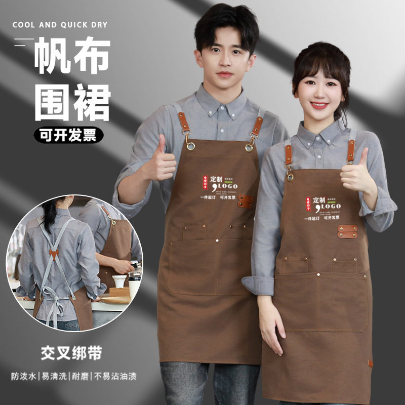 帆布围裙加工定制小批量外贸批发餐饮广告防水防油工作服定做