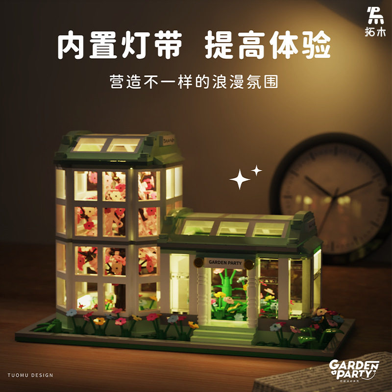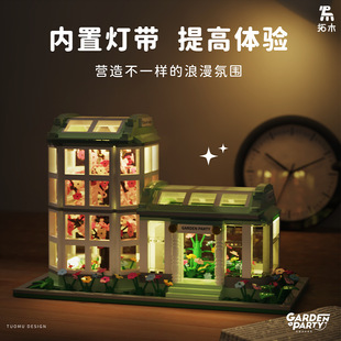 拓木T3008阳光植物园灯光版 益智积木玩具摆件 DIY小颗粒儿童拼装