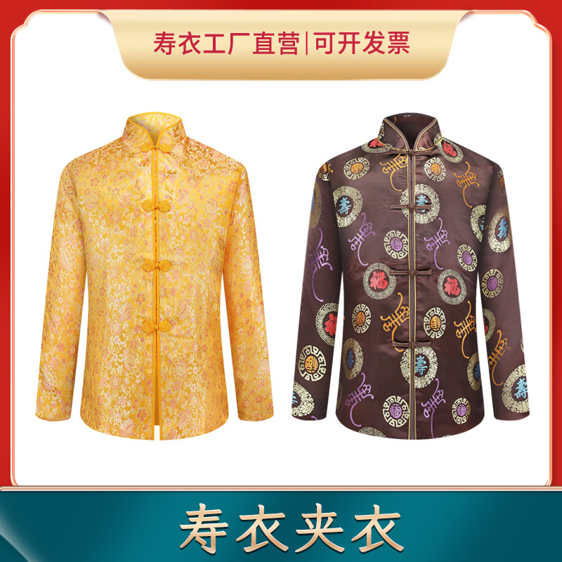 速发寿衣夹单8件套男真丝织锦唐装 人褂衣件殡葬用 老马冲喜夹袄衫