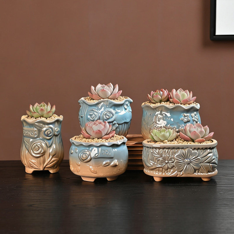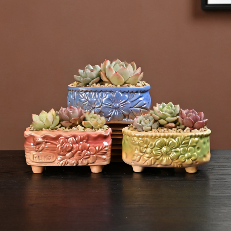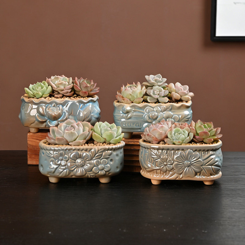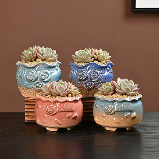 多肉花盆陶瓷多肉植物粗陶复古紫砂创意大小口径简约特价 清仓家用
