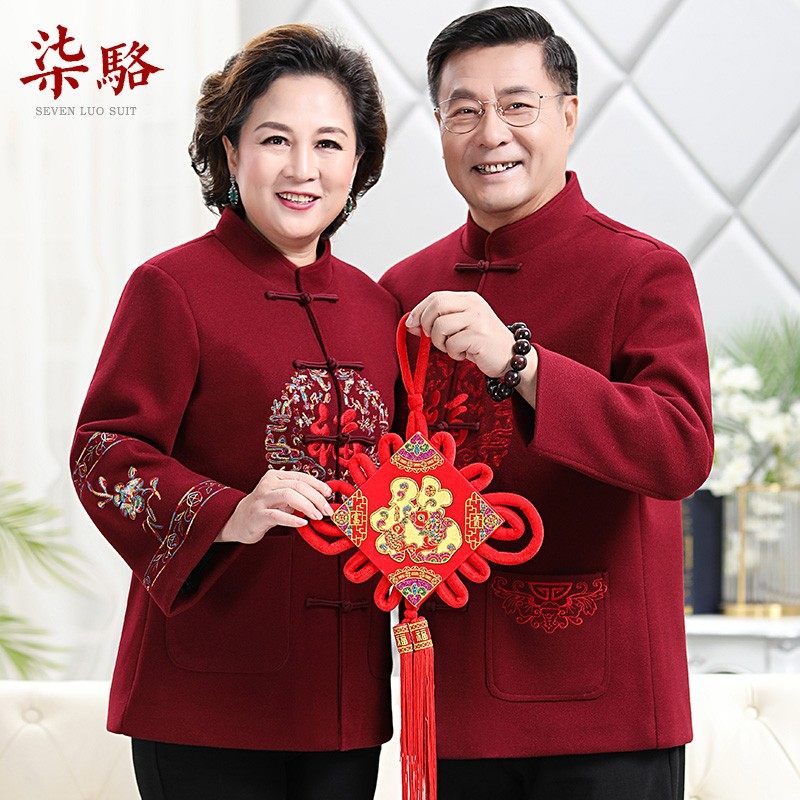 情侣套装 爷爷奶奶装 老人过寿星生日衣服 男中老年爸爸婚礼冬装 唐装