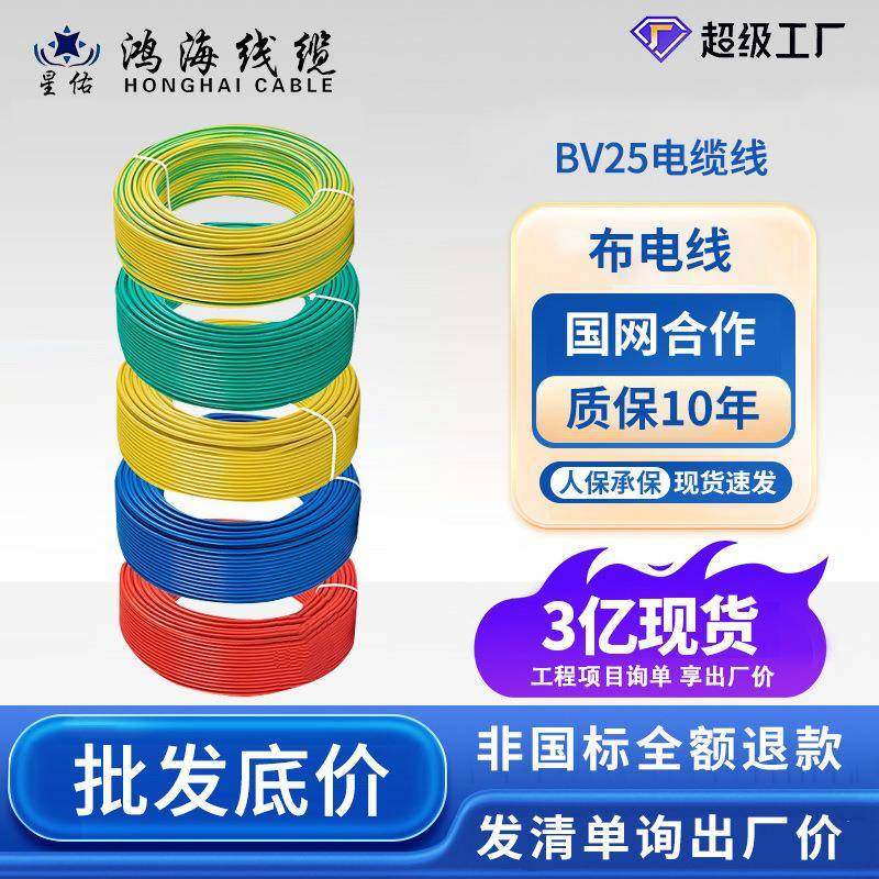 BV线线方缆铜芯电线电751缆电力BV25平家用家v装 单支硬b绝缘电线
