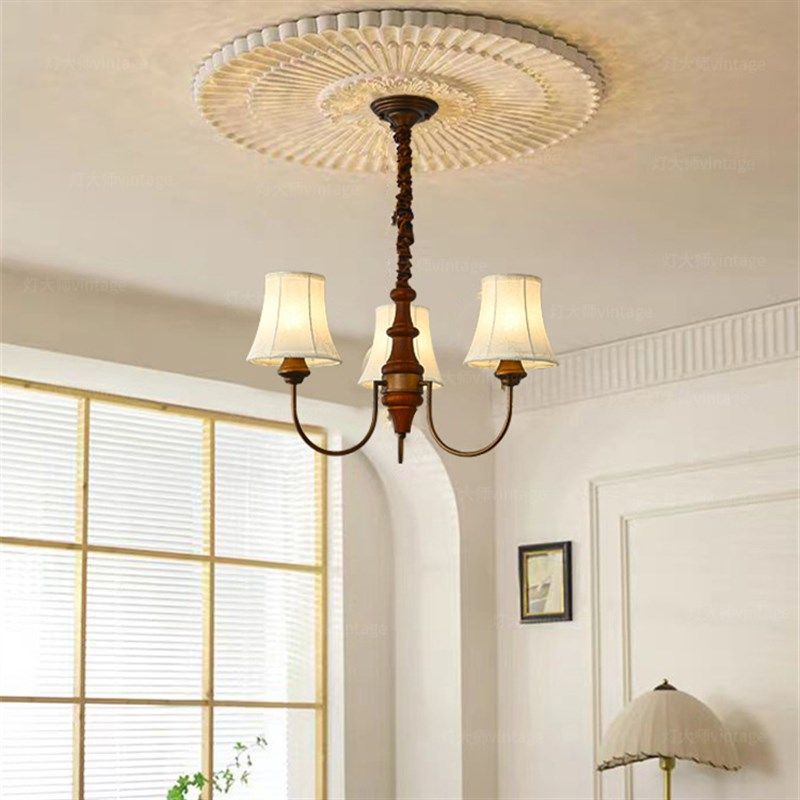 全铜高端风扇吊灯客厅灯卧室餐厅灯新中式 中古风胡桃木色吊扇灯