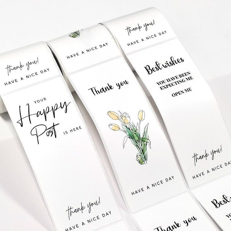 白色长方形贴纸礼盒密封贴干胶标签感谢贴谢谢英文卉贴纸