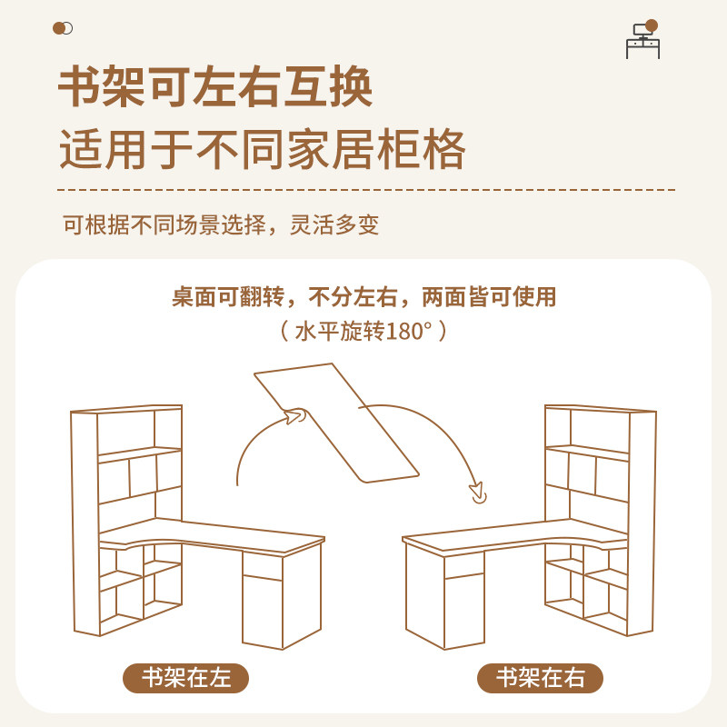 加厚书桌书架一体转角电脑台式 桌家用卧室学生学习桌写字桌子