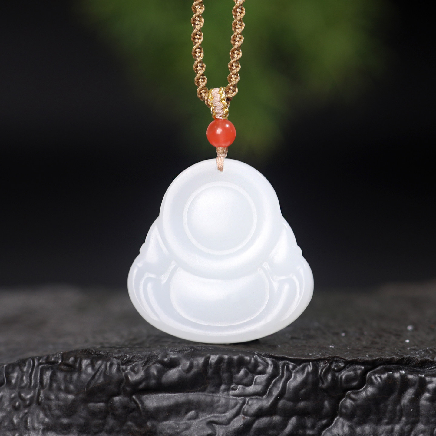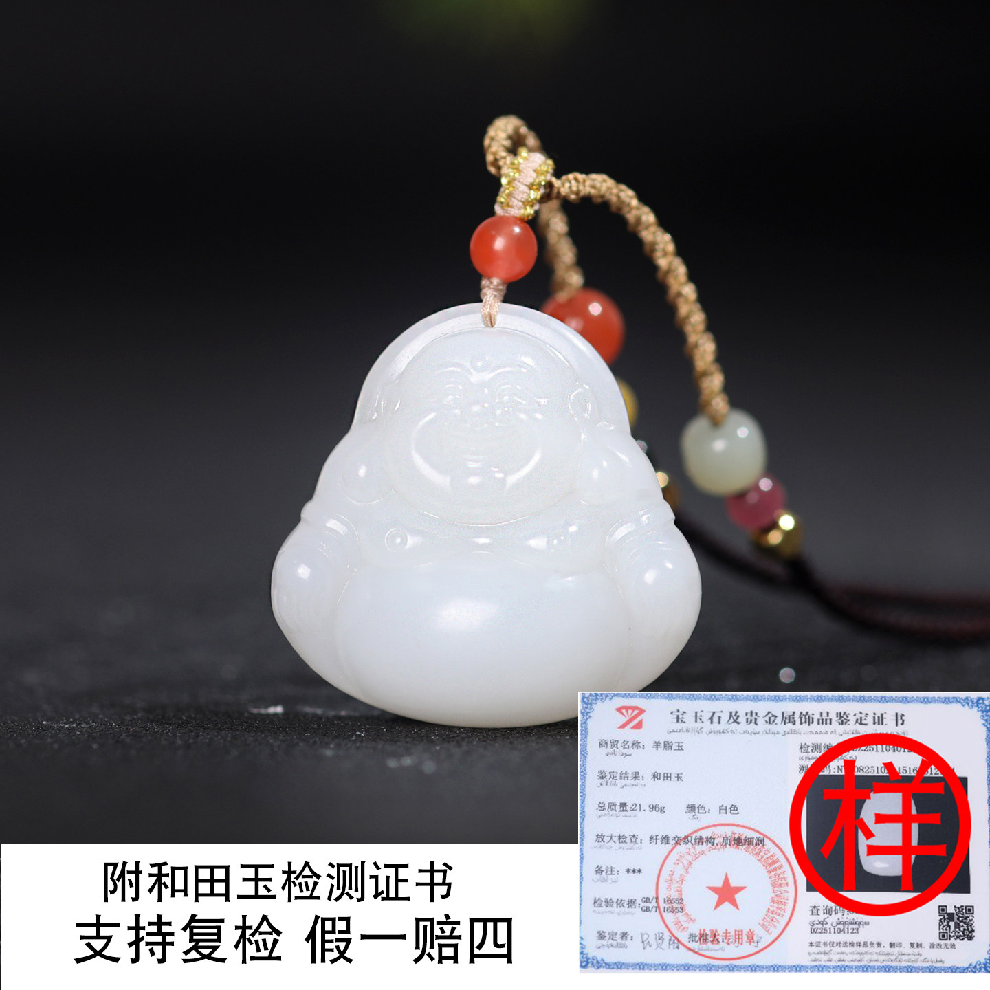 珪宝和田玉羊脂玉弥勒佛吊坠女款 笑佛玉挂件天然玉石玉项链带证书
