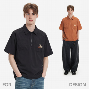 男女复古宽松情侣休闲翻领上衣 POLO衫 悟空有货夏季 肌理感纯色短袖