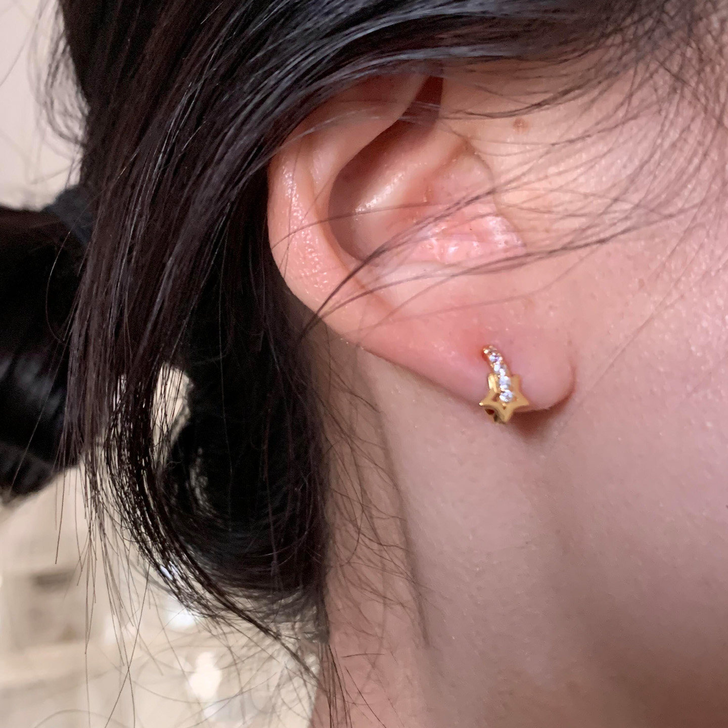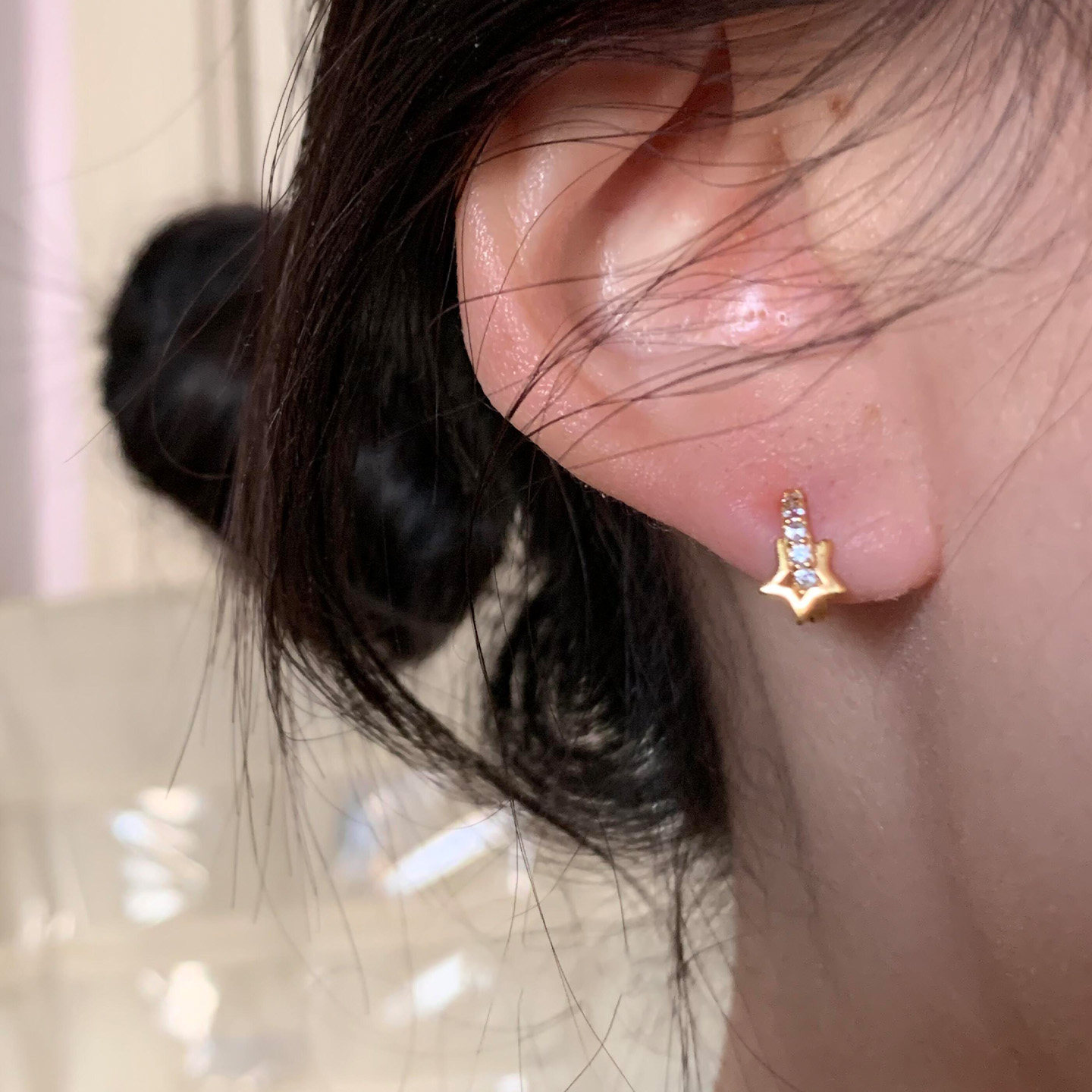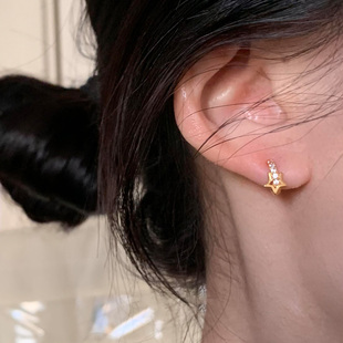 925纯银耳圈欧美风轻奢气质大方镶钻圈迷你超小耳环 豌豆饰物