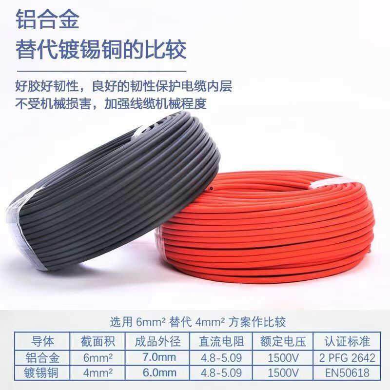 光伏直流电缆铝合金光伏线4 F太阳能电池楹用红黑连接 6平方PVHL1