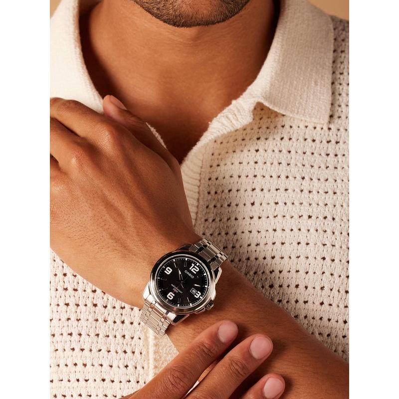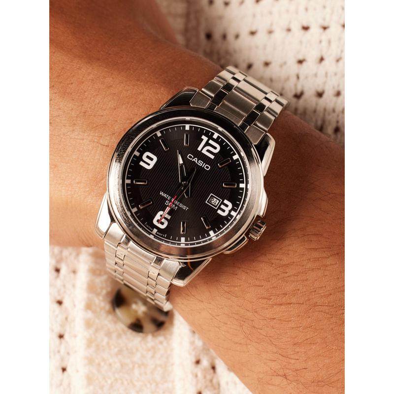 代购 腕表日期夜光计时50M防水金属钢带防水银色商务 卡西欧男士