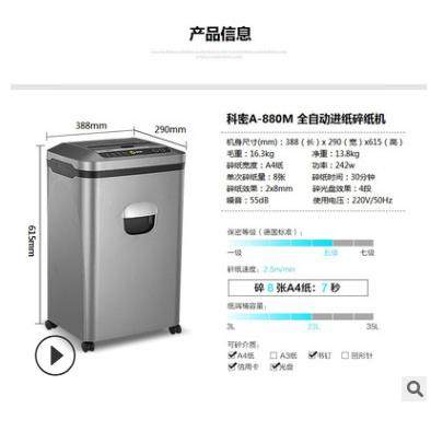 科密A 880M五级保密23L自动进纸80张商用家用电动办公碎紙机