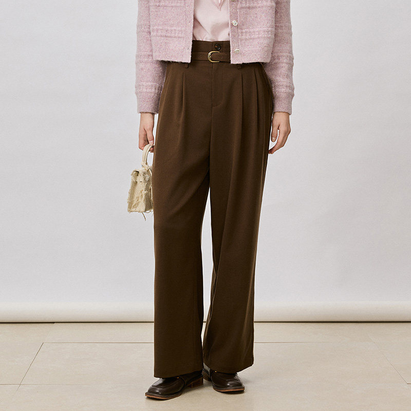 百搭直筒休闲裤 新款 女2026春季 PIT复古棕色高腰显瘦长裤
