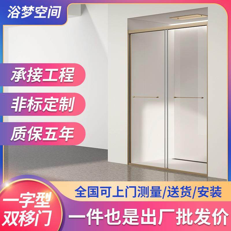 一字双型移干门淋浴房湿分离钢化卫玻璃隔断生671间下沉式 浴室淋