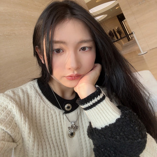 圆领撞色针织开衫 日娜高奢20XXASIA hja 女秋冬毛衣外套 BUYER