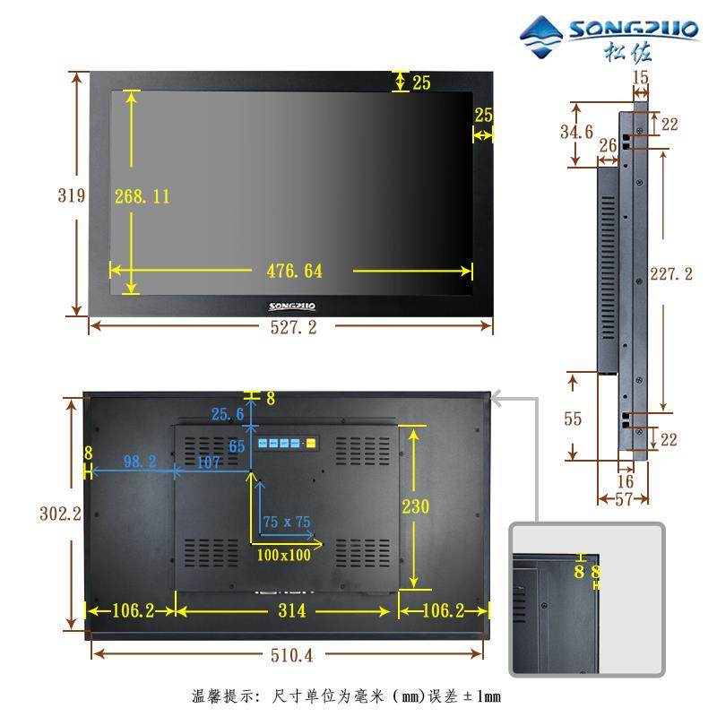 工控电脑显示屏 嵌入式 松佐22寸工业液晶显示器 电阻电容红外触摸