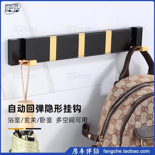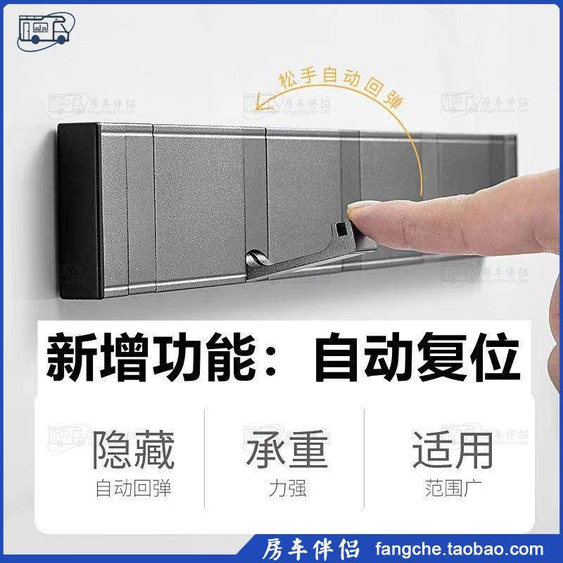 折叠隐形自动回弹挂衣钩太空铝免打孔自动覆位安全排钩 房车伴侣