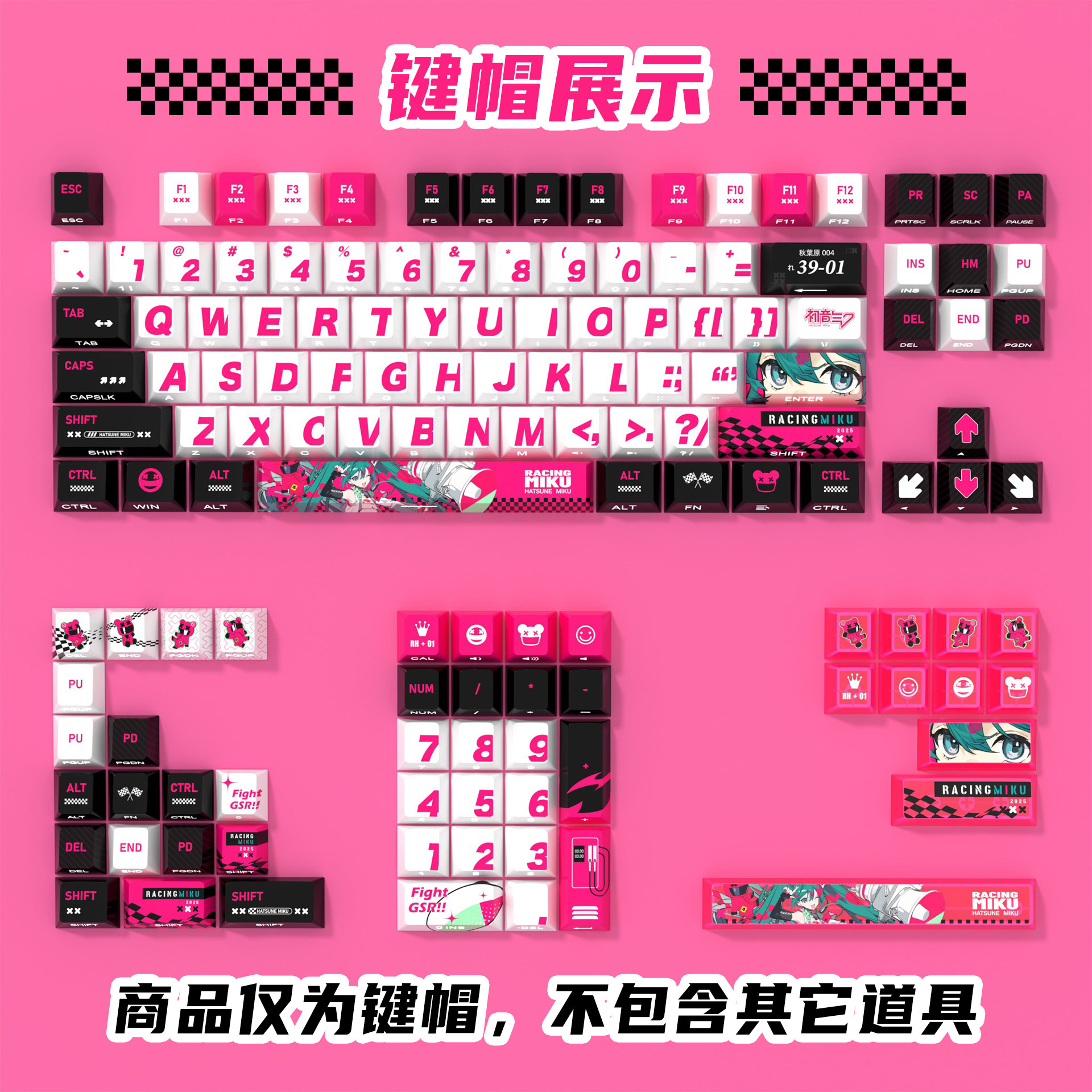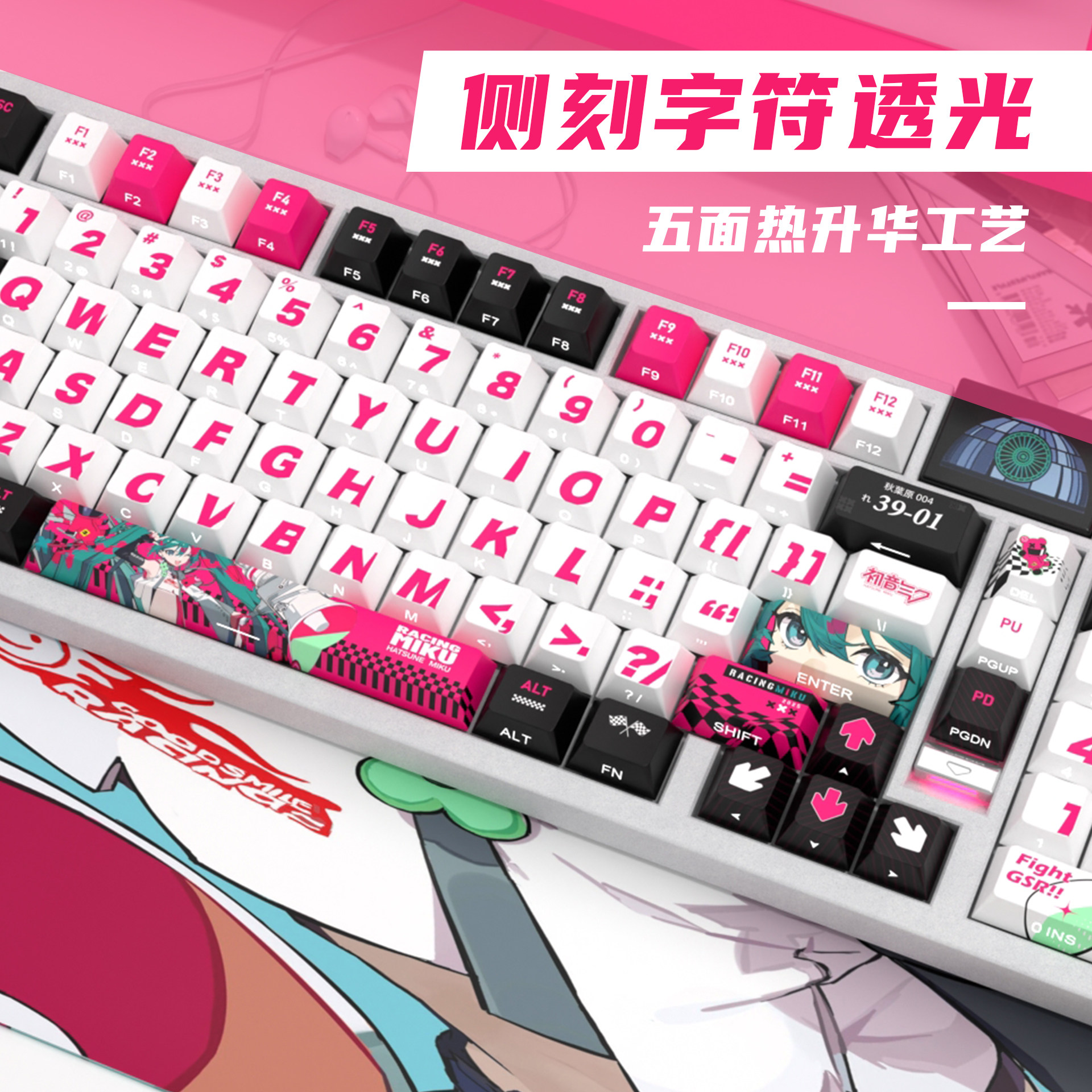 赛车初音侧刻原厂透光键帽全套PBT热升华适配ROG夜魔美加狮woot