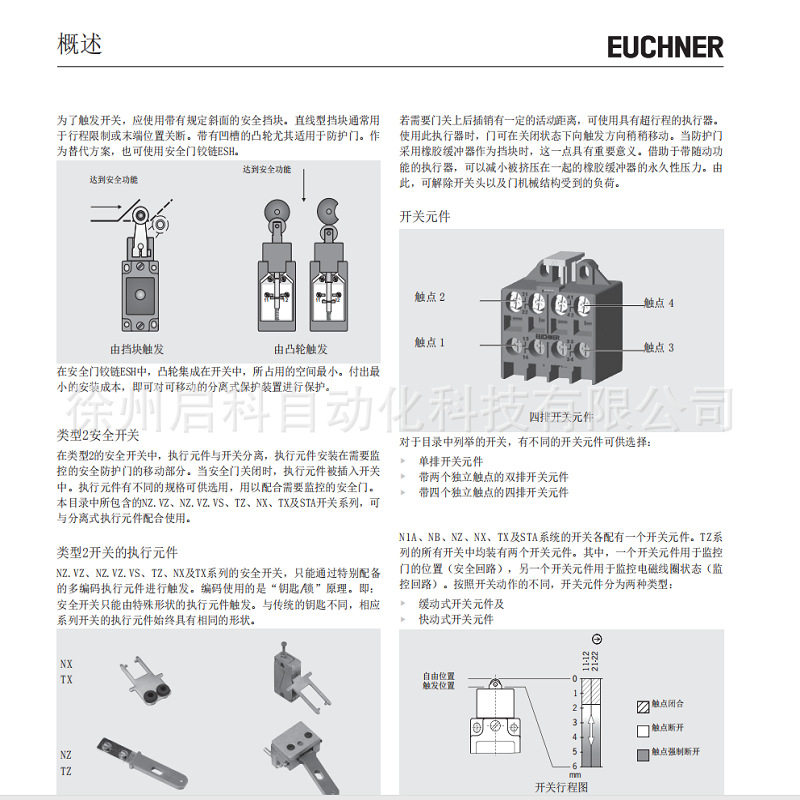 EUCHNER安士能TZ系列安全开关 货号046502开关 TZ1LE024SR6